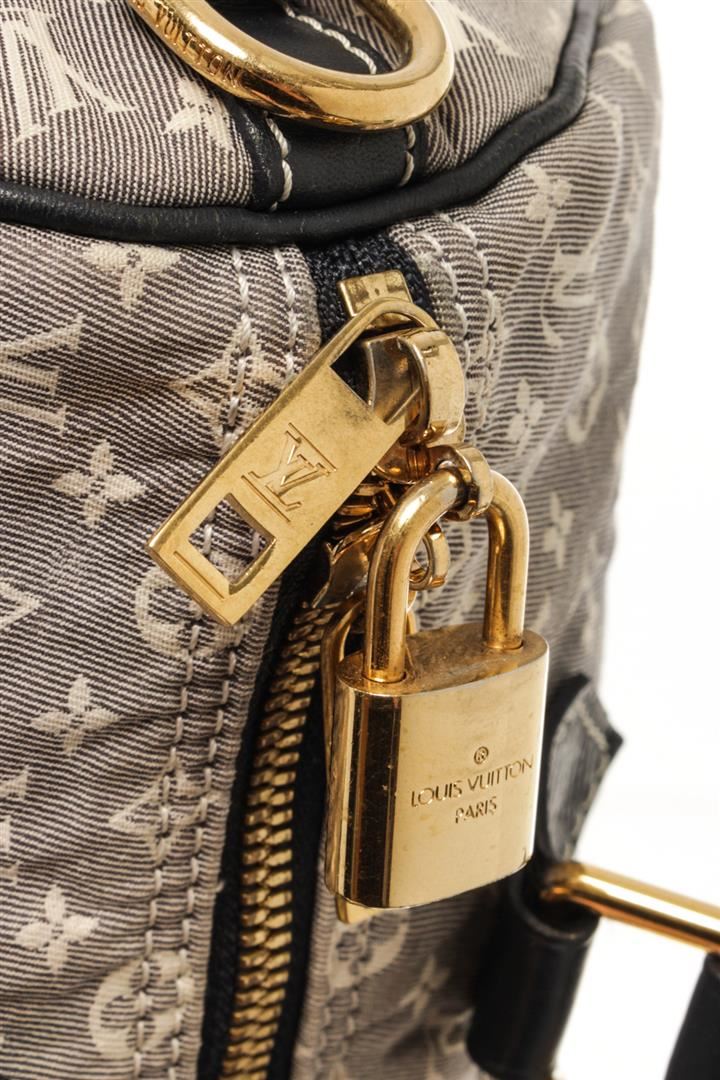 One Louis Vuitton Grey Monogram Mini Lin Speedy Bandouliere 30 Boston Bag. Item is sold AS-IS. All available information is listed in the description and shown in the photo. Louis Vuitton Grey Monogram Mini Lin Speedy Bandouliere 30 Boston Bag with blue top handle, gold tone hardware, zipper closure, lock and fabric lining. This does not come with a strap, the lining is stained, there is a burn whole on the exterior fabric. Please refer to photos. Dimensions: 20.5cm x 30.5cm x 18cm / 8.07" X 12.00" X 7.08" Inches