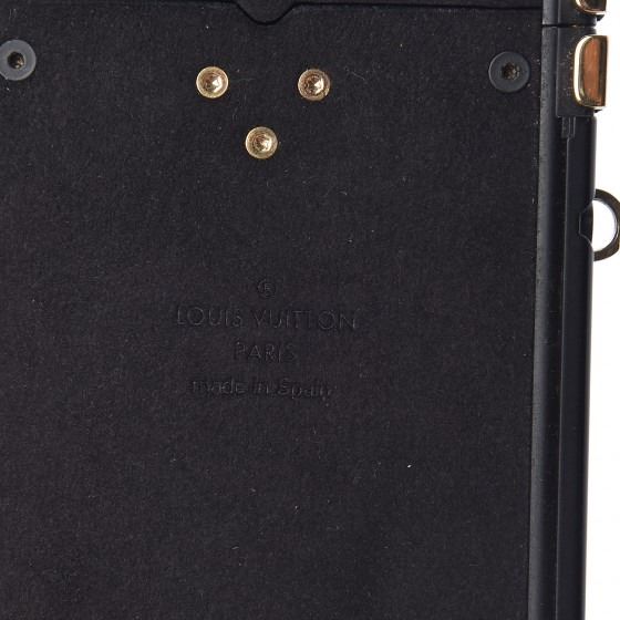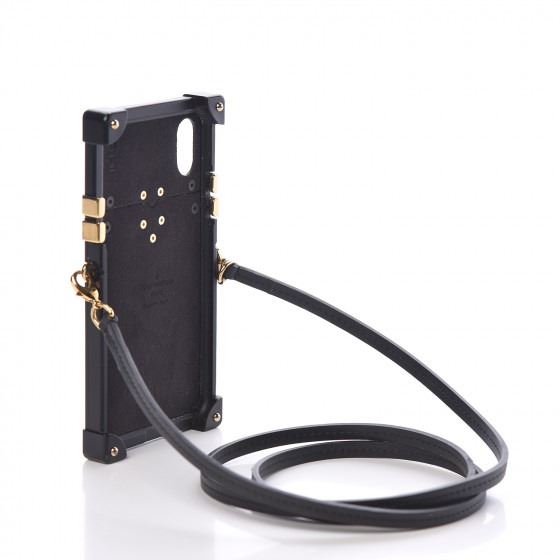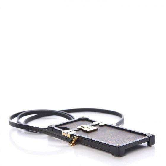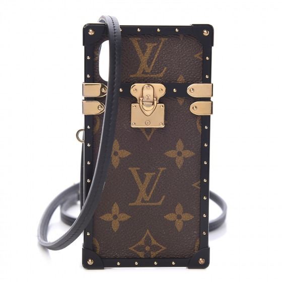 Case is finely crafted of monogram coated canvas and polished gold hardware and is styled after the iconic Louis Vuitton trunk. The case holds an iPhone X perfectly.