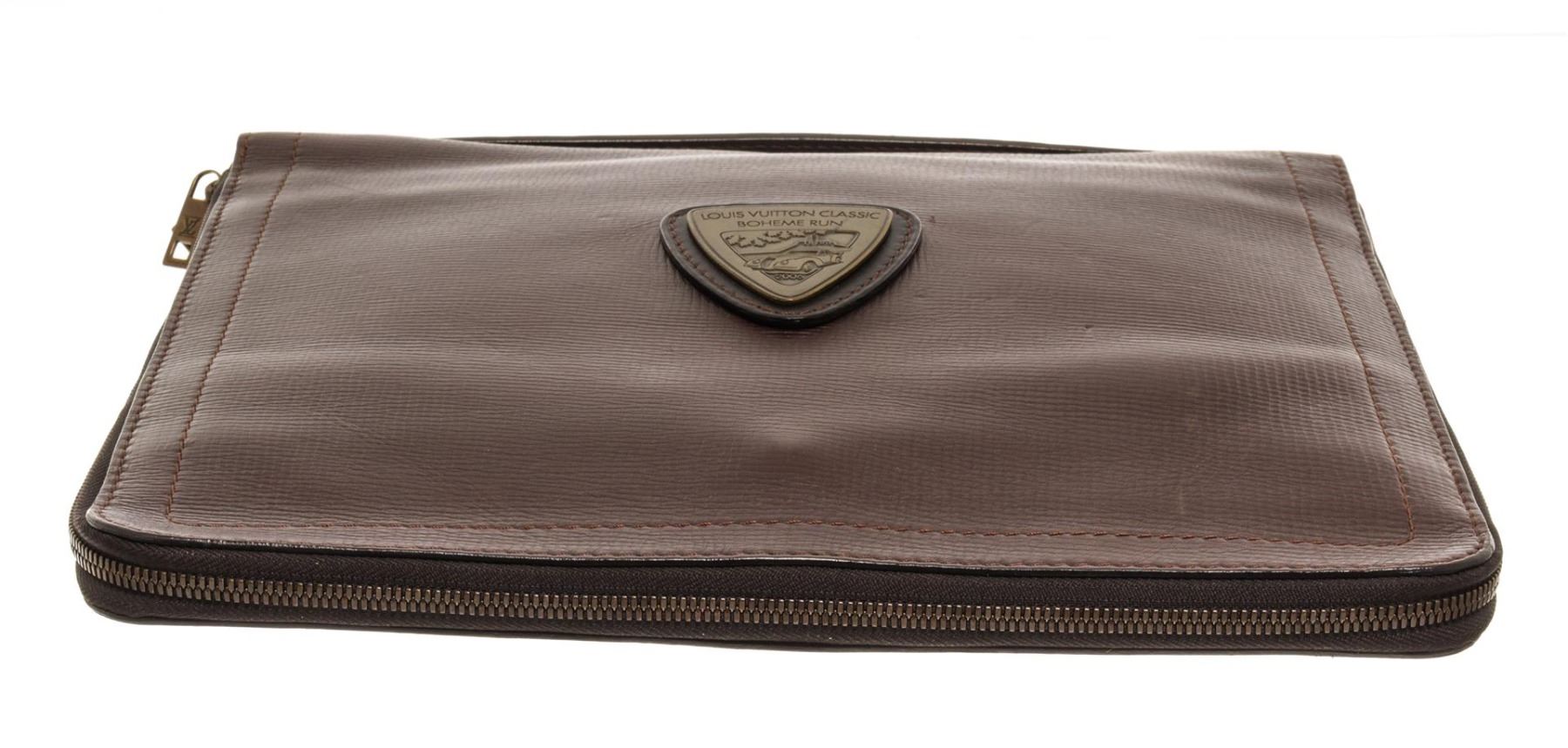 Louis Vuitton LV Bohemerun Clutch Clutch Brown Leather. Brand: Louis Vuitton, Style: LV Bohemerun Clutch, Type: Clutch, Exterior Color: Brown, Exterior Material: Leather, Exterior Pockets: None, Interior Color: Brown, Interior Material: Leather, Interior Pockets: One, Closure: Zip closure, Length: 13, Width: 1, Height: 11.5. Item is sold AS-IS and all information pertaining to this lot is available in the photos or this description.