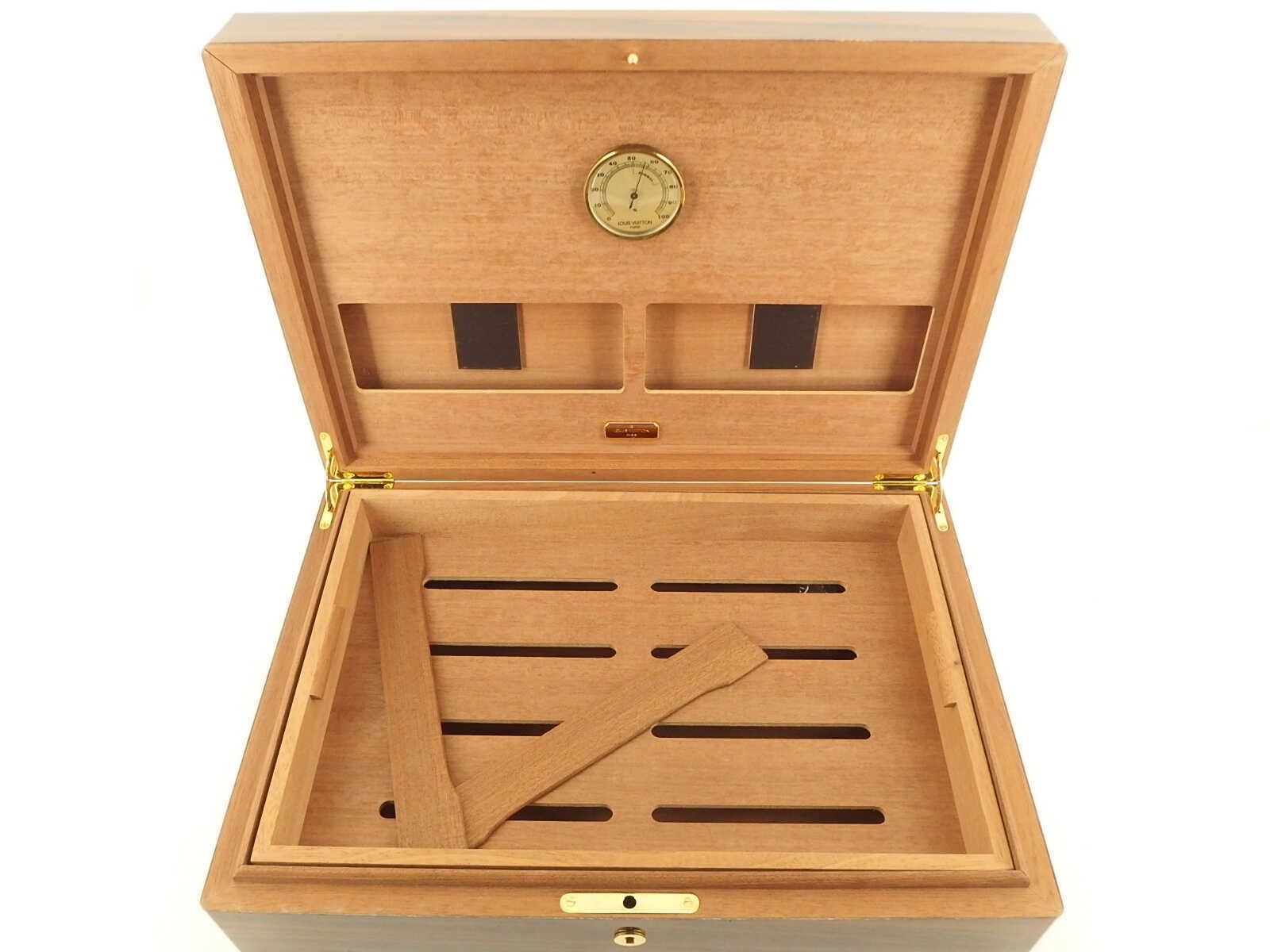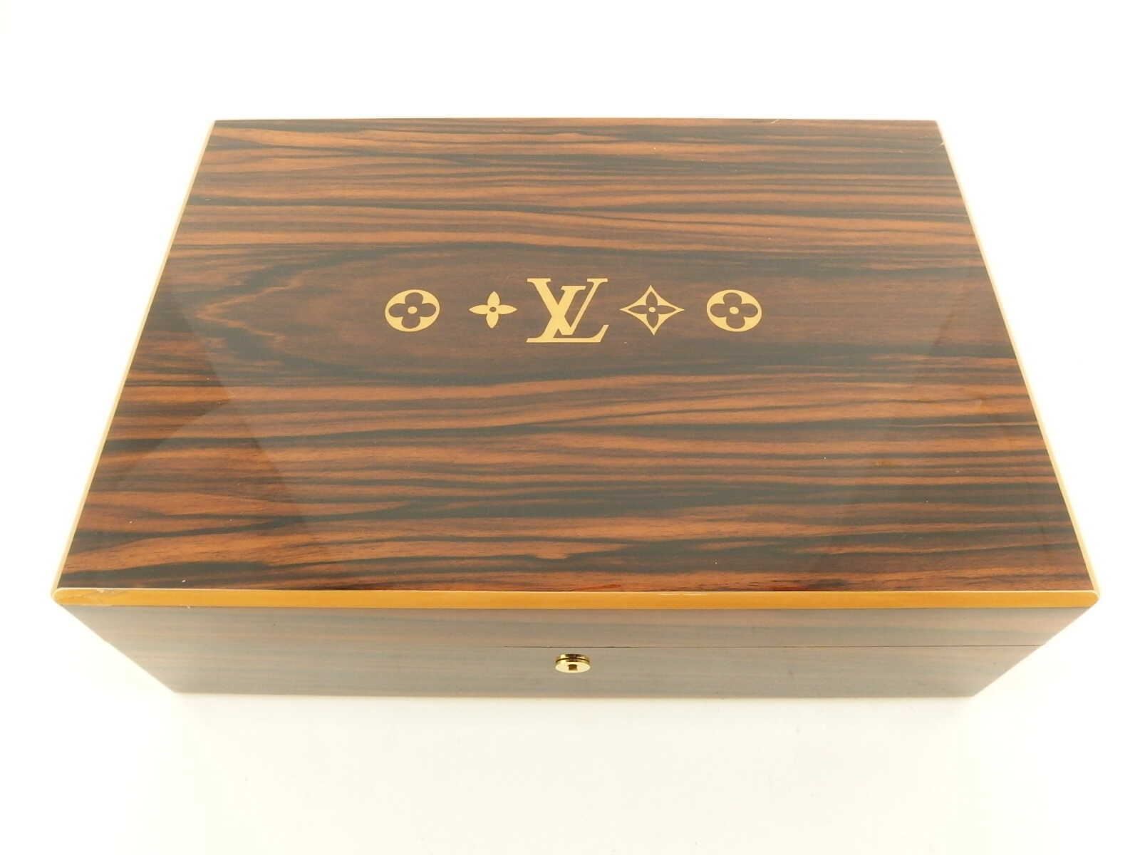One Louis Vuitton Lacquer Wood Desk Cigar Cigarette Humidor Case. Item is sold AS-IS. Please check photos and descriptions for all available details. Louis Vuitton Lacquer Wood Desk Cigar Cigarette Humidor Case