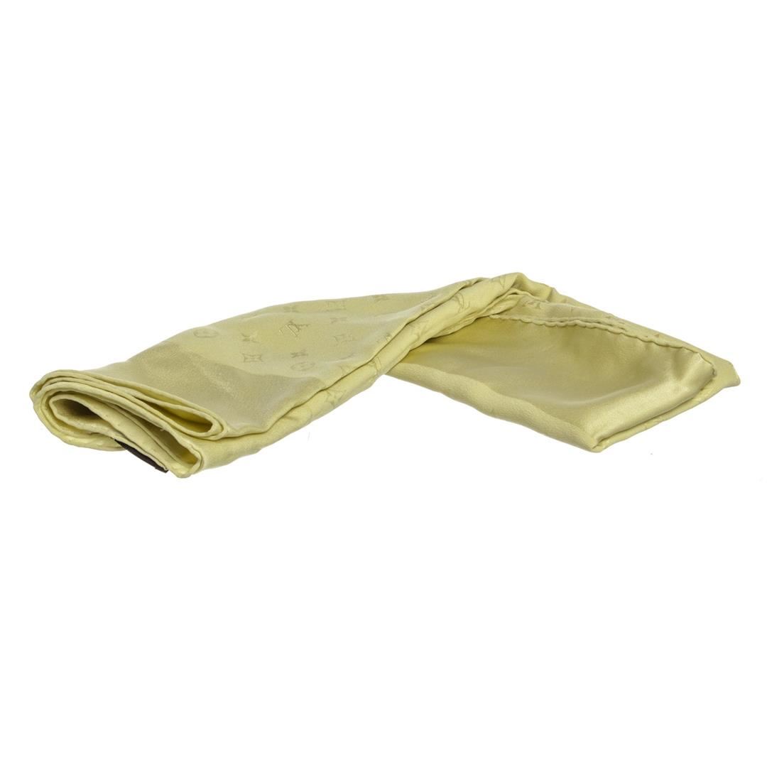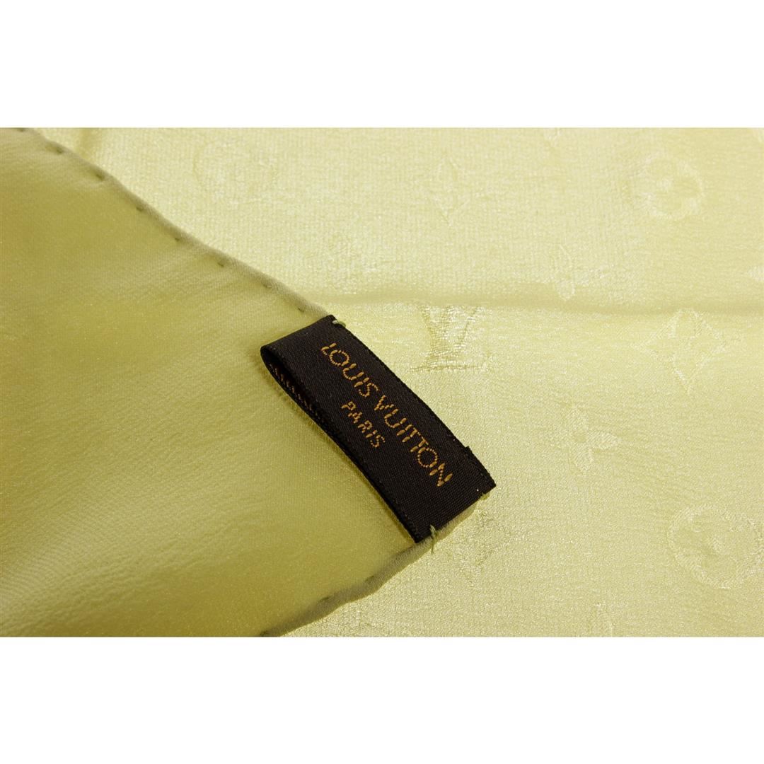 Louis Vuitton light green/yellow monogram silk scarf. Please note single small spot on scarf.