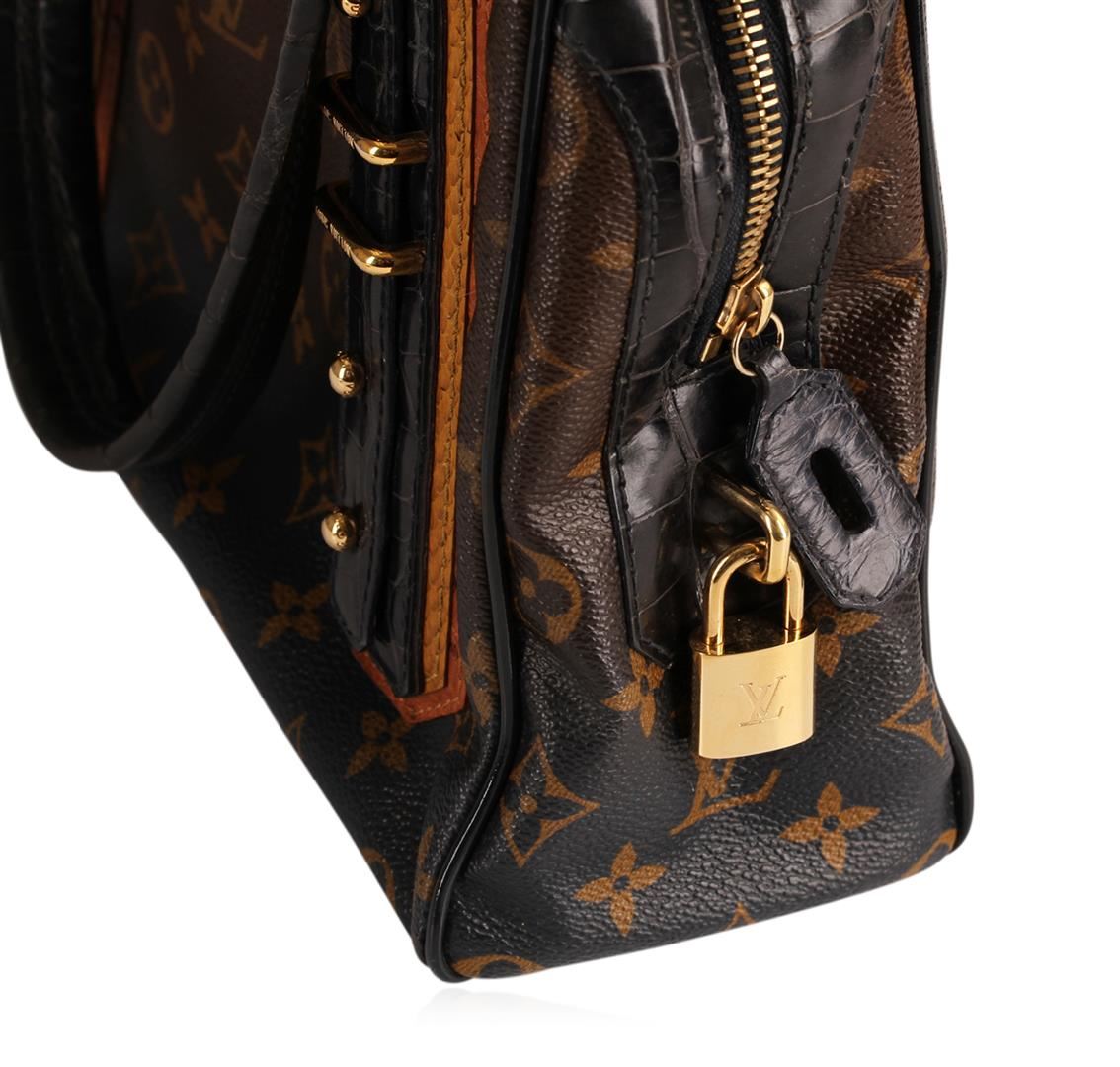 One Louis Vuitton Limited Navy Blue and Tan Leather Purse. This authentic roomy tote epitomizes everyday sophistication and makes a perfect everyday bag, large enough to hold all your essentials in style. The model of this handbag is a limited edition, and the material of the bag is ostrich. The leather handbag measures Length 12in, Width 4in. The interior color of the bag is blue and contains one pocket. The exterior and interior of this bag is in excellent condition. Made in France.
