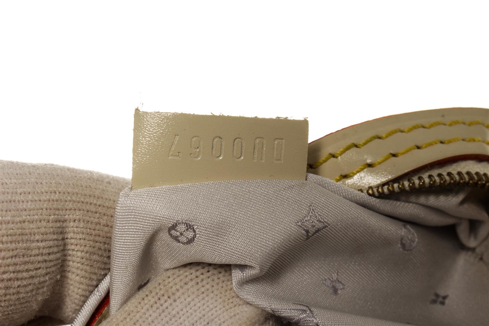 Louis Vuitton Lockit. All available information is listed in the description and shown in the photos. Louis Vuitton Lockit White Suhali Leather. Features gold hardware, white leather handles, red leather lining, white canvas interior, and a gold zipper closure.