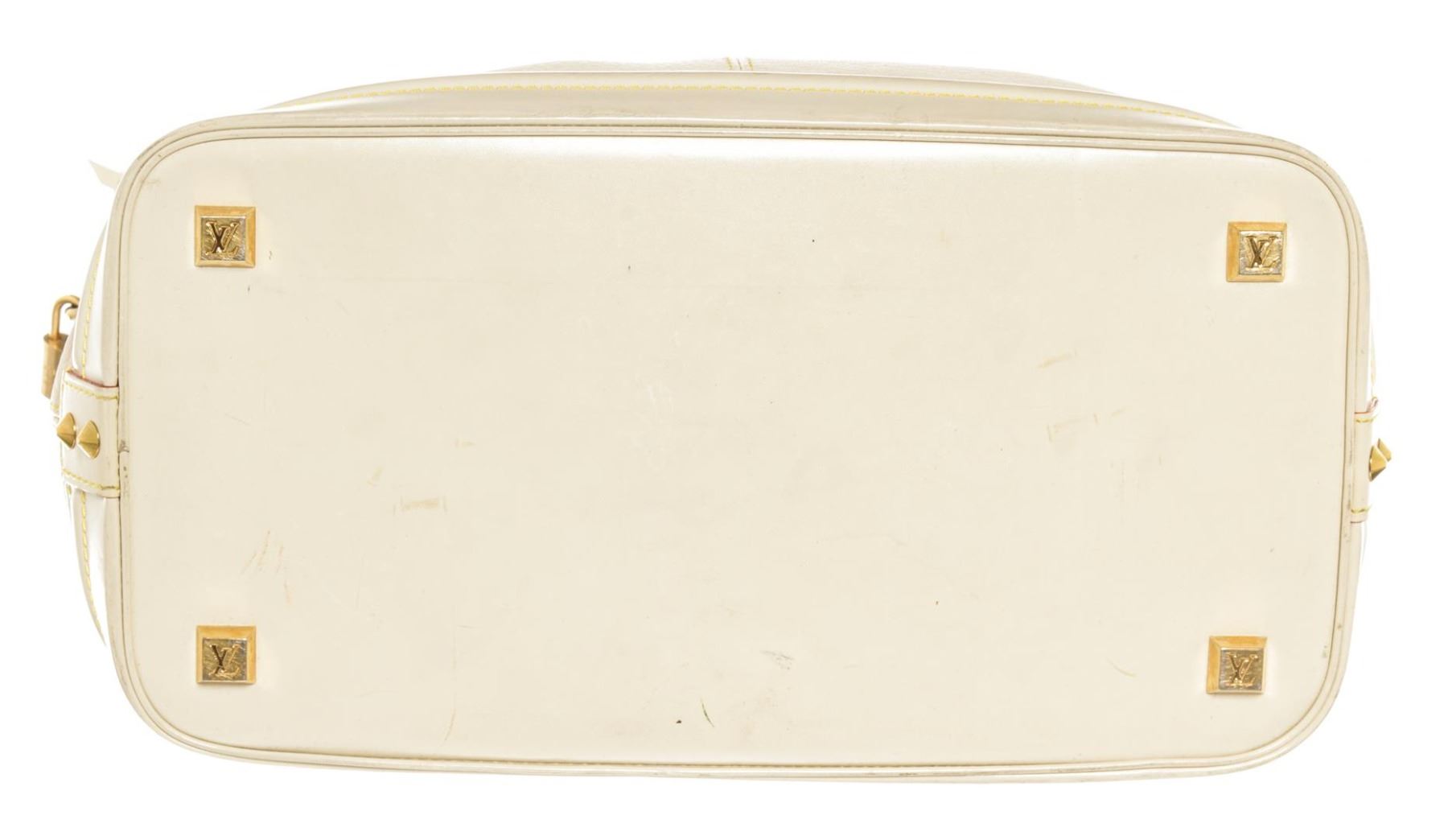Louis Vuitton Lockit. All available information is listed in the description and shown in the photos. Louis Vuitton Lockit White Suhali Leather. Features gold hardware, white leather handles, red leather lining, white canvas interior, and a gold zipper closure.