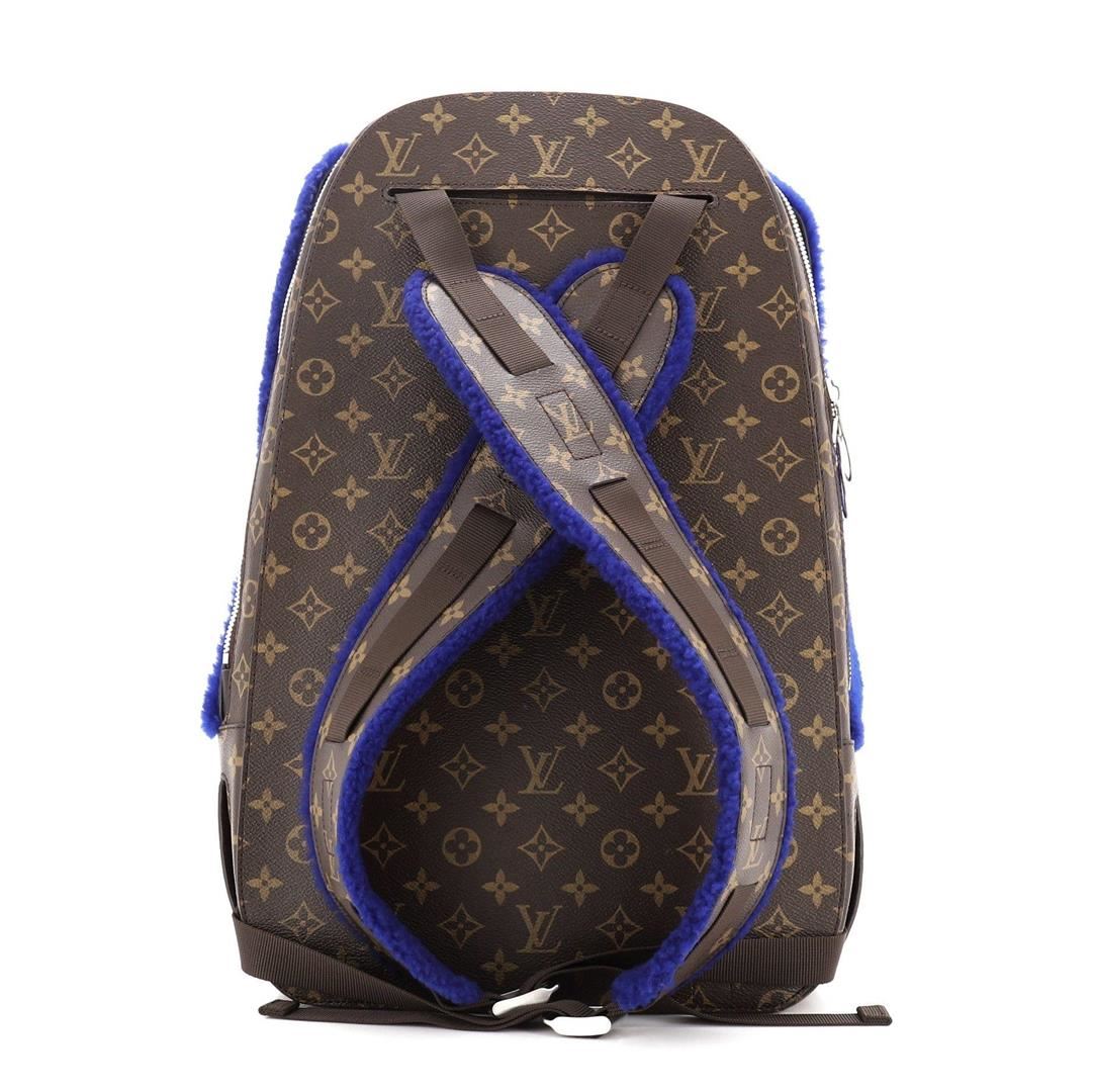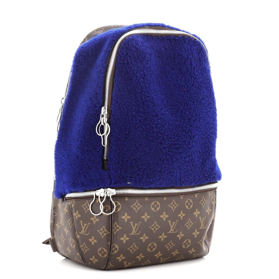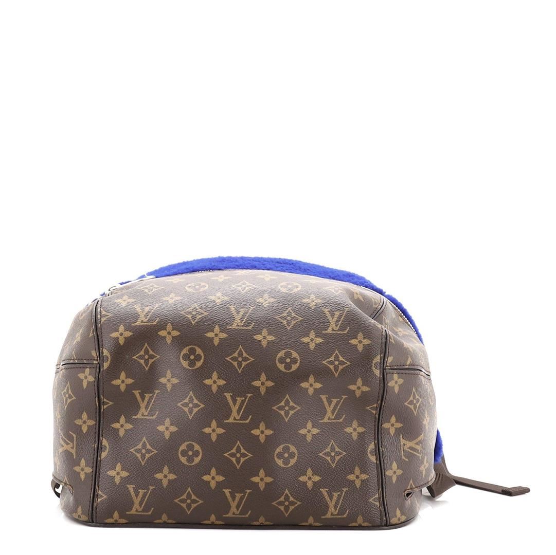 Louis Vuitton Marc Newson Backpack Shearling and Monogram Canvas with blue fur, silver-tone hardware and alcantara microfiber lining. Dual zip backpack, front zip with one interior slip pocket and one mesh interior pocket. Back zip with one mesh pocket, three monogram leather slip pockets and zipper closure. Height 19", Width 12", Depth 8.5", Strap Drop 10-16"Features: • Backpack MEASUREMENTS: 12 in / 30 cm 8.5 in / 22 cm 19 in / 48 cm Condition: Pre-Owned Good