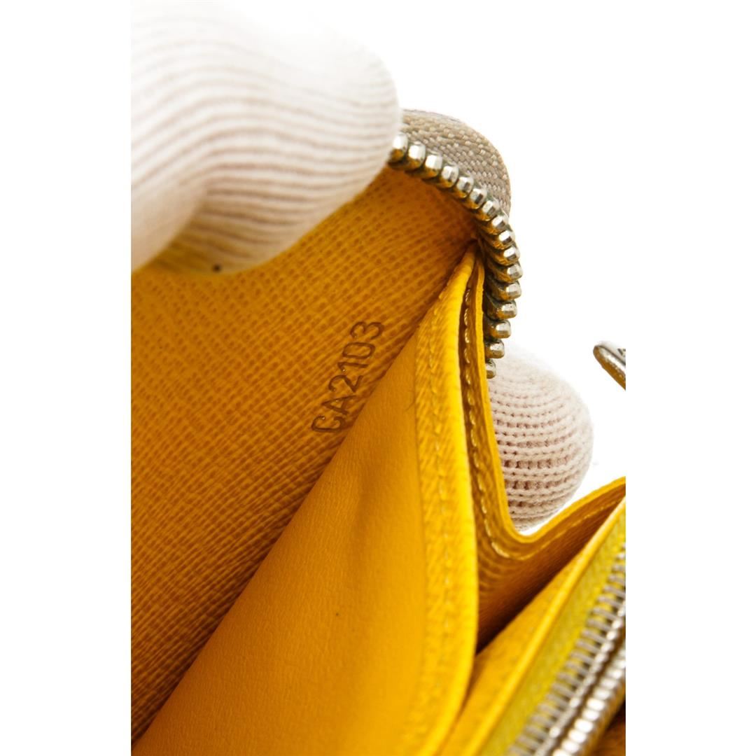 Mauve Epi leather Louis Vuitton Zippy wallet with silver-tone hardware, yellow leather lining, dual bill compartments, single zip pocket at interior wall, ten card slots and zip-around closure. Authentic.