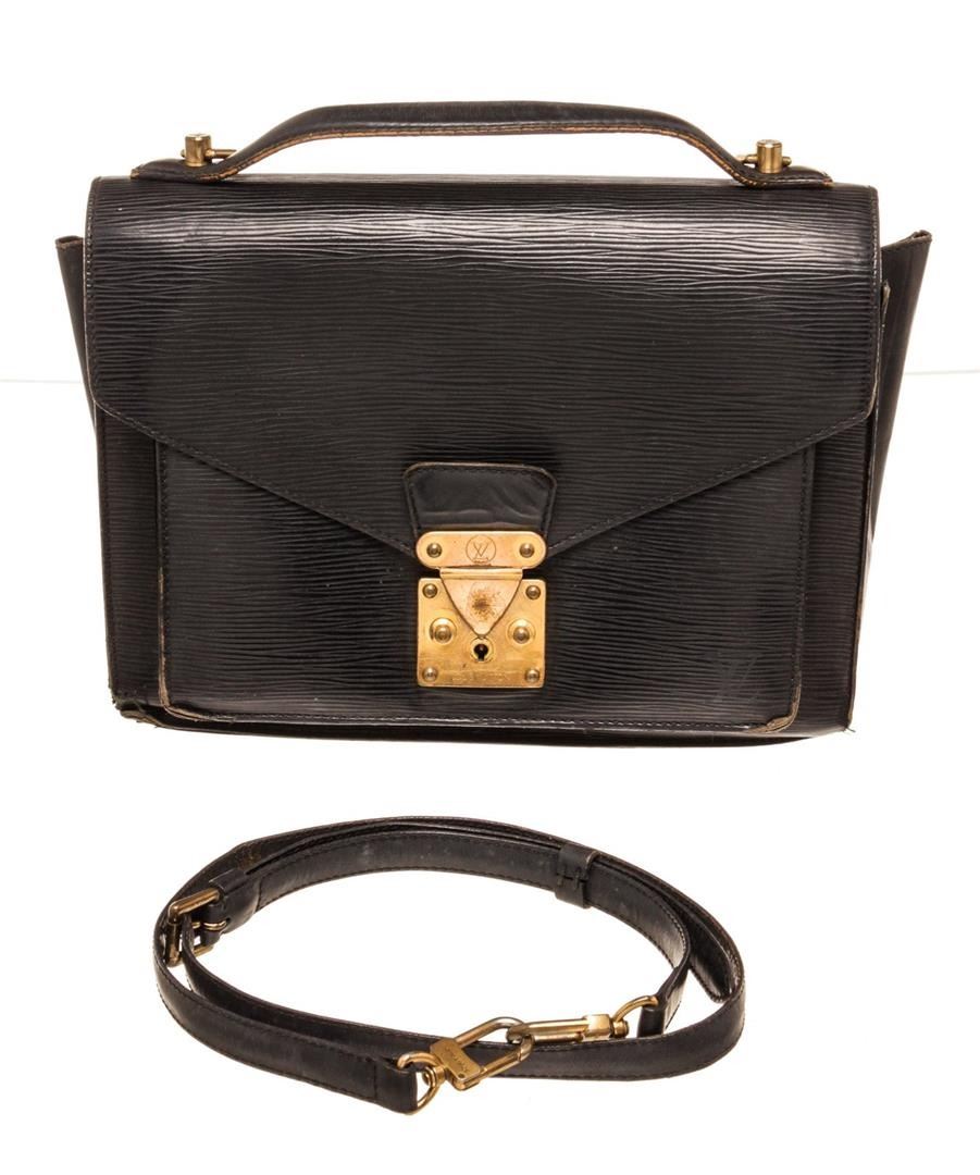 Louis Vuitton Monceau Handbag. Brand: Louis Vuitton, Style: Monceau, Type: Handbag, Exterior color: Black, Exterior material: Epi Leather, Interior color: Black, Interior material: Leather, Length: 11", Width: 3", Height: 8". Item is sold AS-IS and all in