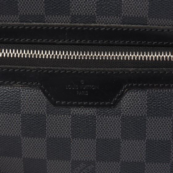 LOUIS VUITTON Damier Graphite Michael Backpack is crafted of Louis Vuitton signature damier gray check canvas and features a front small zipped pocket and two larger zipped compartments. There is a nylon grip found at the top for convenience and is accompanied by cushioned adjustable nylon straps.