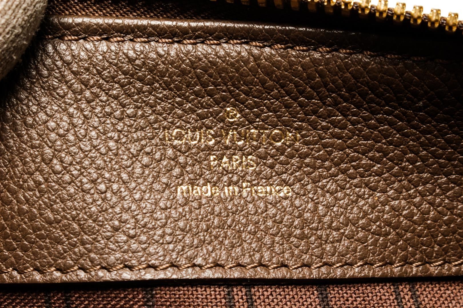 One Louis Vuitton Monogram Brown Calfskin Audacieuse Handbag. Item is sold AS-IS. All available information is listed in the description and shown in the photo. Louis Vuitton monogram brown calfskin Audacieuse handbag with embossed calfskin and brown suede exterior, brown fabric lining, brown leather top handle, adjustable and detachable long strap, gold-tone hardware, and zipper closure.