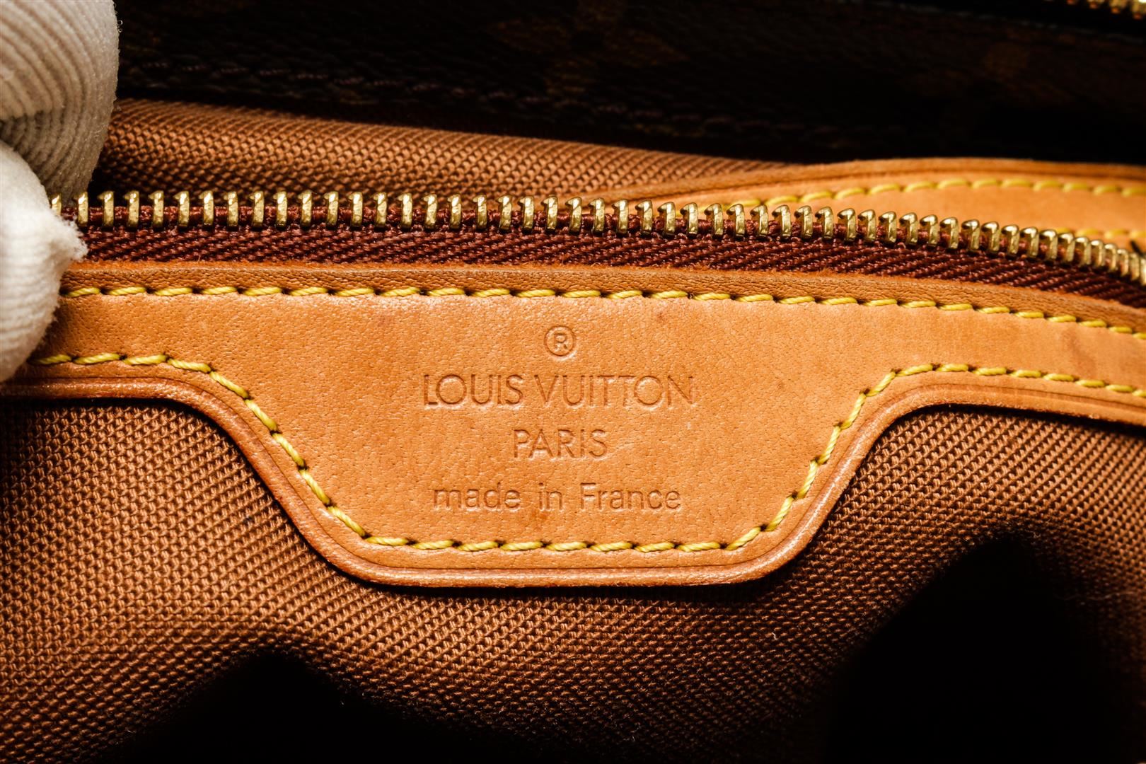 One Louis Vuitton Monogram Cabas Piano Handbag. Item is sold AS-IS. All available information is listed in the description and shown in the photo. Louis Vuitton Monogram Cabas Piano handbag with brown coated canvas exterior, brown fabric lining, contrasting vachetta leather top handles and bottom, gold-tone hardware, zipper closure, and one main compartment with one zip pocket.