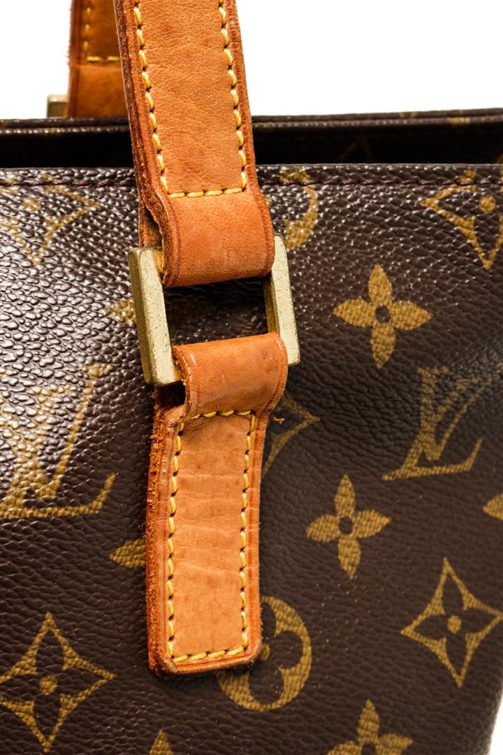 One Louis Vuitton Monogram Cabas Piano. Item is sold AS-IS. All available information is listed in the description and shown in the photo. Louis Vuitton Monogram Cabas Piano with coated canvas exterior, brown fabric lining, contrasting vachetta leather straps and trims, gold-tone hardware, zipper closure, and one main compartment with one zip pocket and one slip pocket.