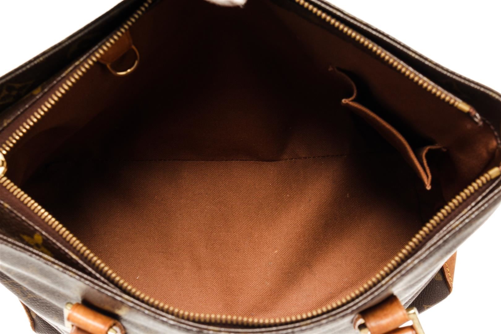 One Louis Vuitton Monogram Cabas Piano. Item is sold AS-IS. All available information is listed in the description and shown in the photo. Louis Vuitton Monogram Cabas Piano with coated canvas exterior, brown fabric lining, contrasting vachetta leather straps and trims, gold-tone hardware, zipper closure, and one main compartment with one zip pocket and one slip pocket.