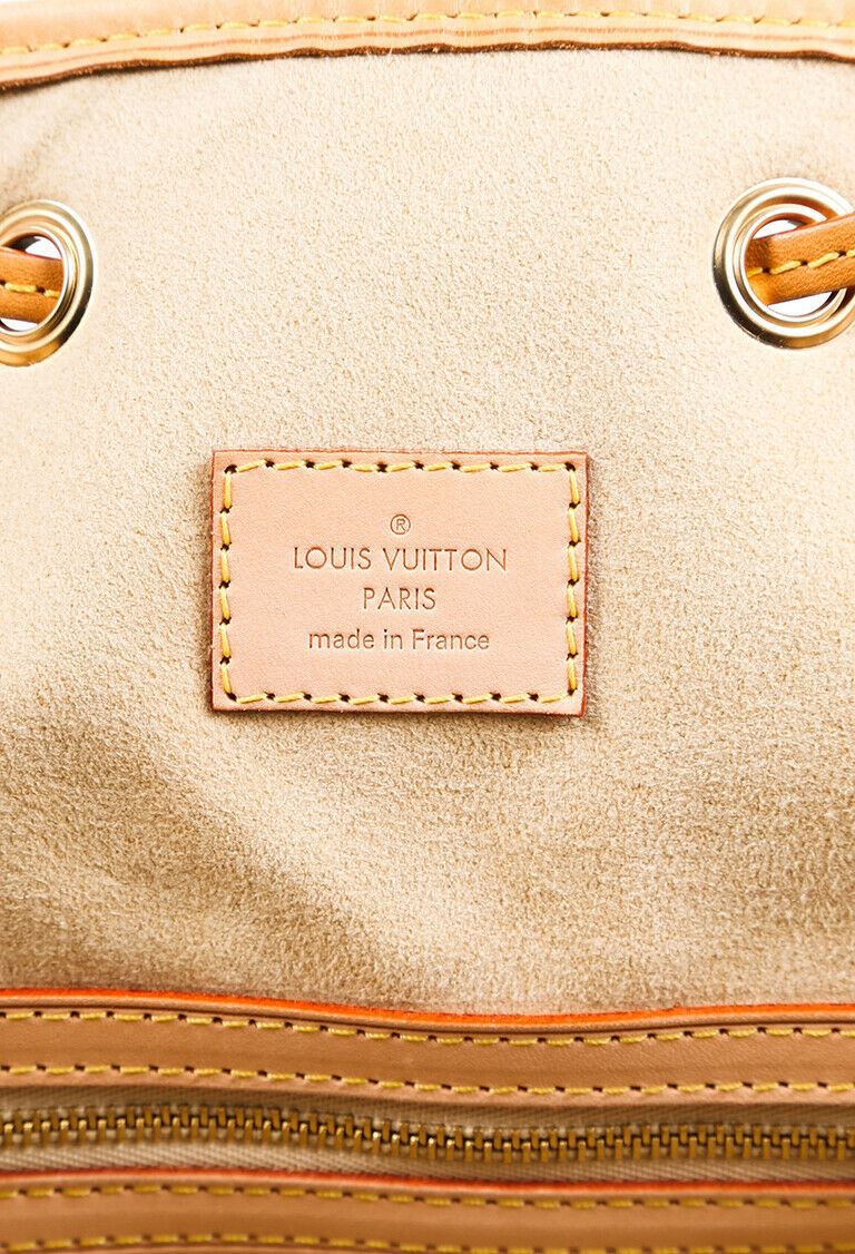 Circa 2010. Louis Vuitton Neo bucket bag is crafted from monogram coated canvas and features brass hardware, dual rolled leather handles, a detachable and adjustable strap, LV lock, drawstring closures, and an Alcantara interior with a zipped pocket.