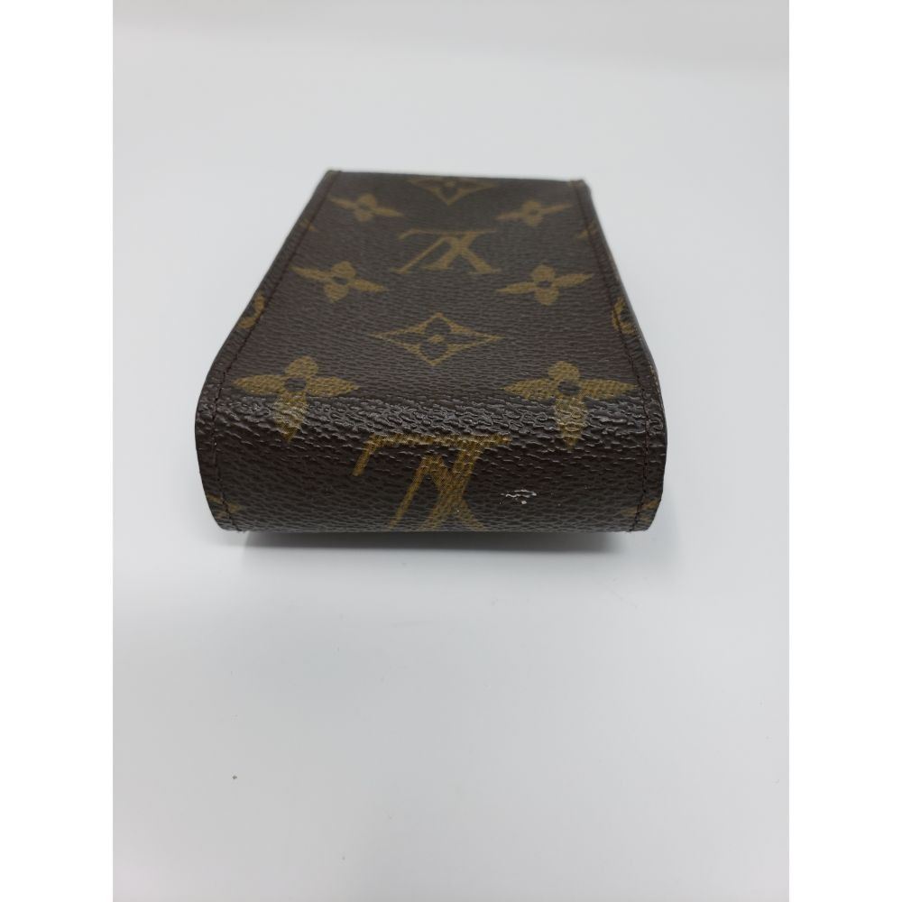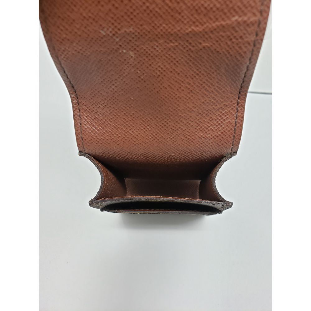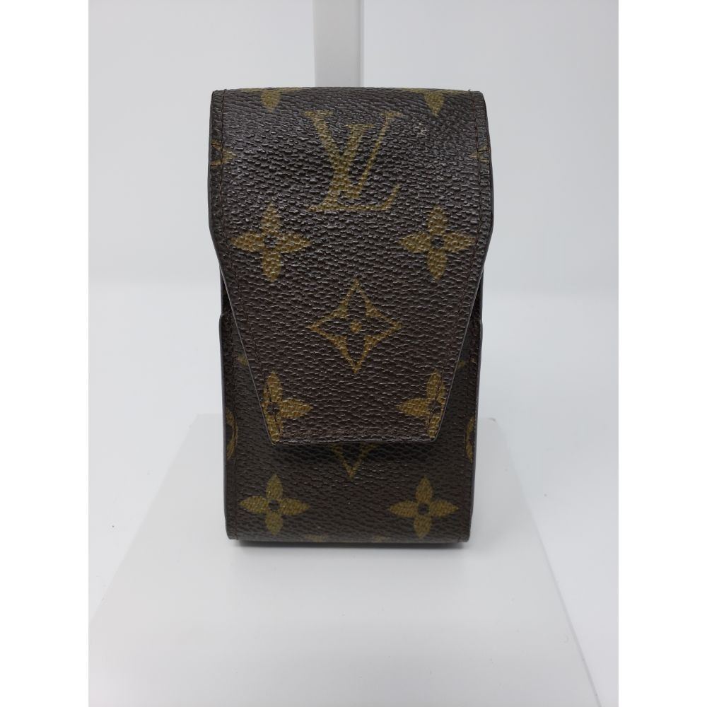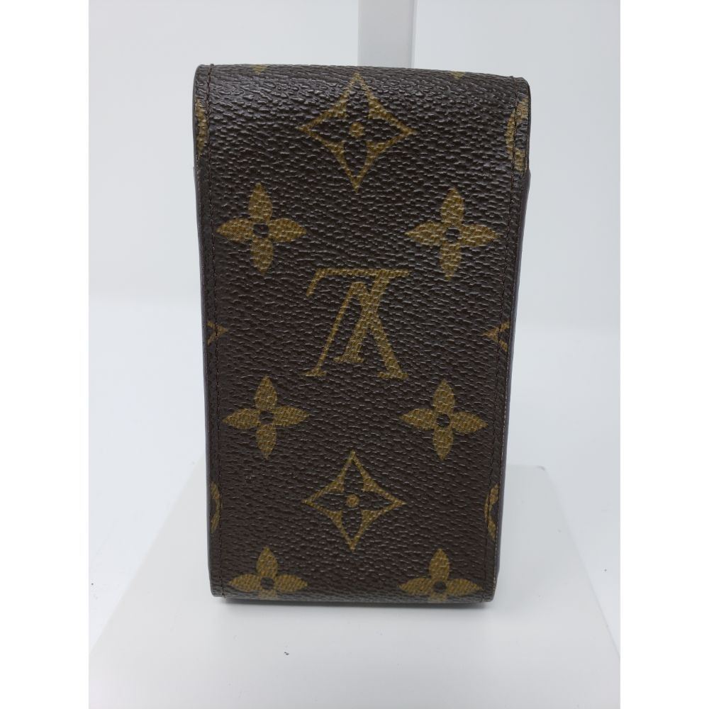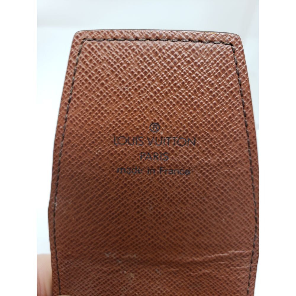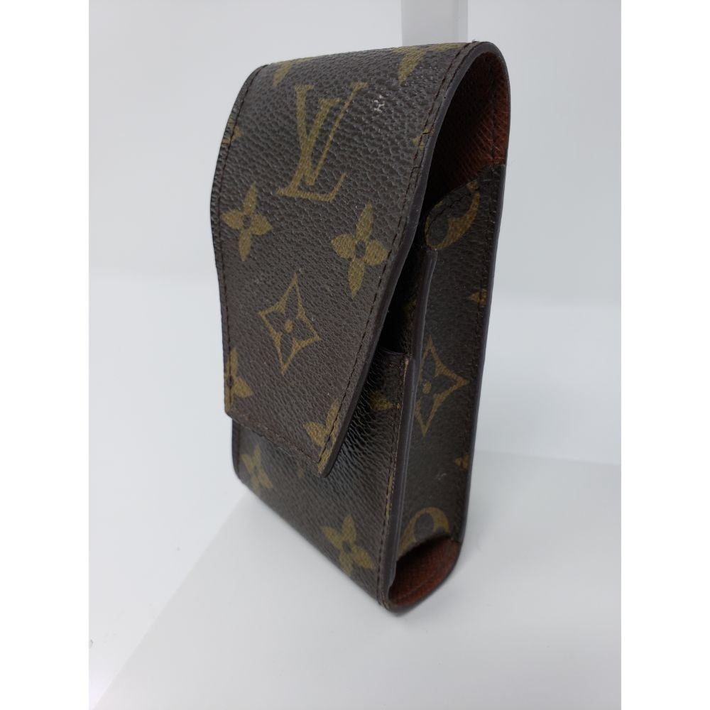 Description: made of Louis Vuitton monogram canvas with a scratch resistant terracotta colored cross grain interior that closes with a flap. This is a large cell phone case that is spacious enough for any of the smart phones and will adjust with the top flap. It has optional holes allowing it to attach to your belt.