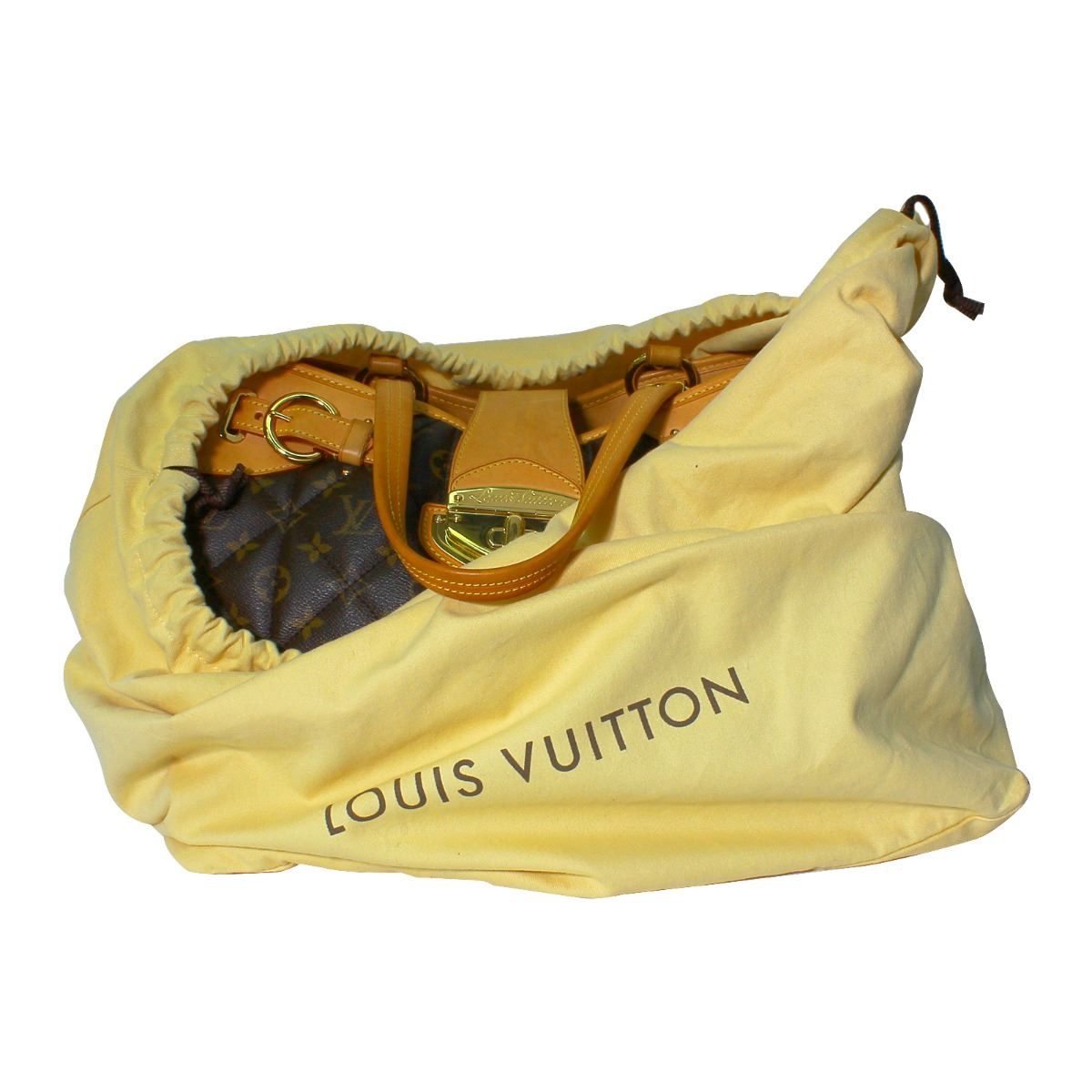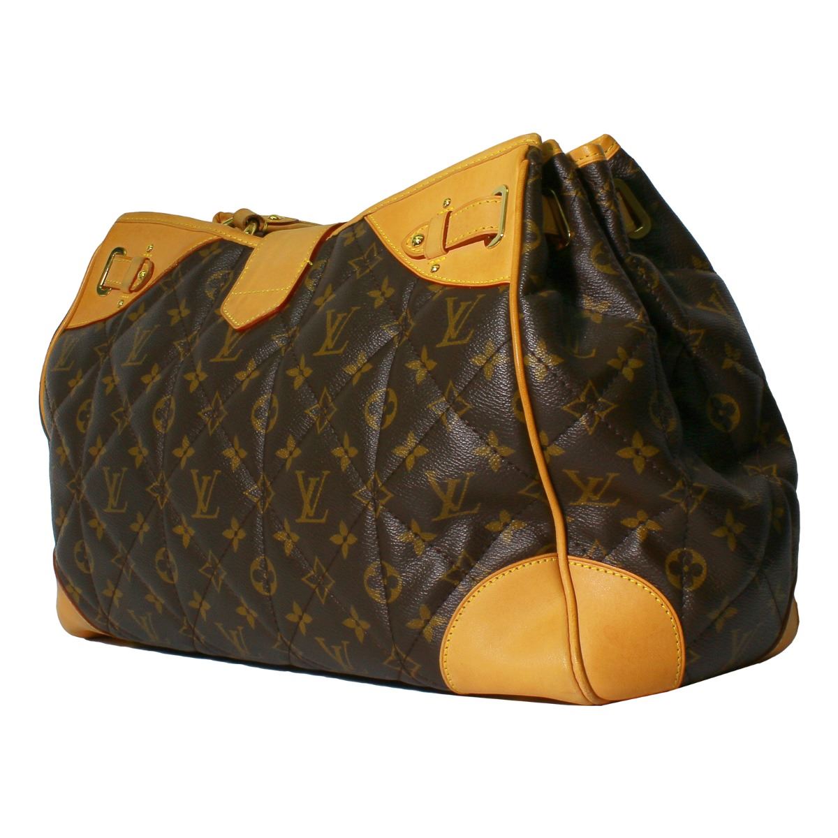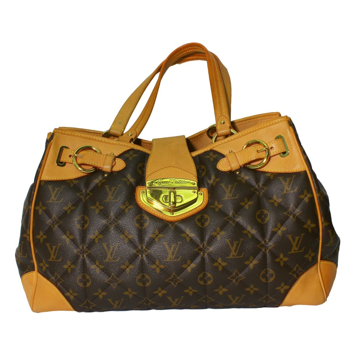 Authentic Louis Vuitton monogram canvas Etoile shopper. This bag features signature Louis Vuitton brown and tan coated canvas, is triple quilted throughout with natural cowhide trim, corners and handles. Gold tone brass twist lock closure with functional corner buckles on either side that allow for further expansion. This bag features 2 interior large compartments which are divided by a large zip pocket. There is an additional zip pocket on the same side. This bag is still in very good condition with very minor color darkening. There are of course some very minor signs of use on the leather parts and hardware. This bag comes with its original dust bag. Retail price is $3650. Dimensions approximately 17" × 11" × 7" with shoulder straps. Drop about 9.5". WE SHIP WORLDWIDE!