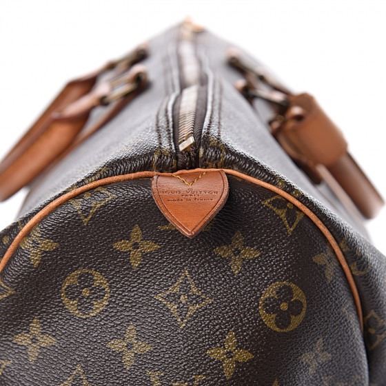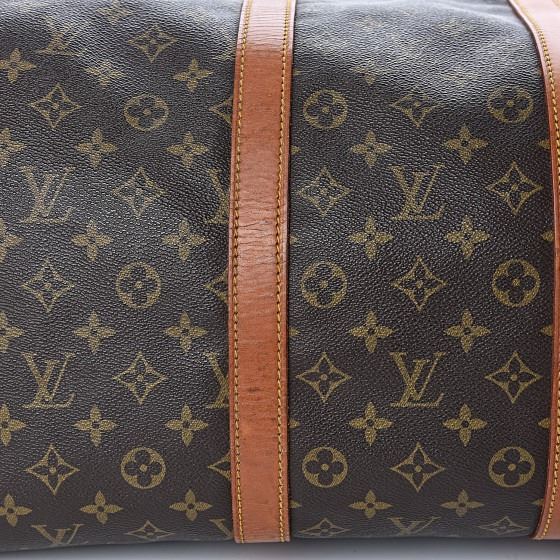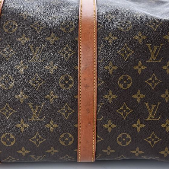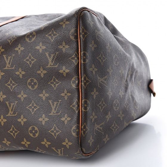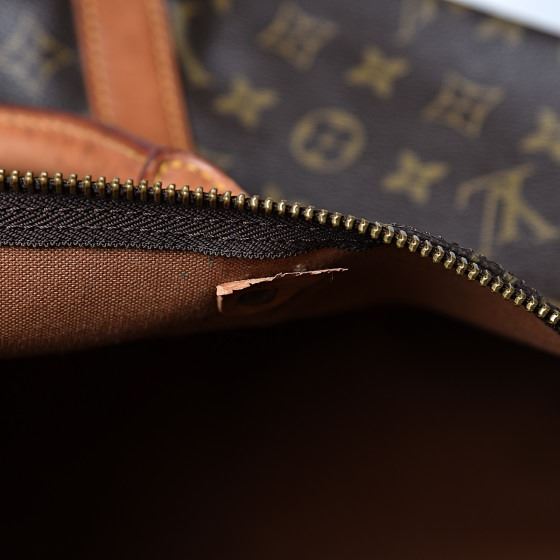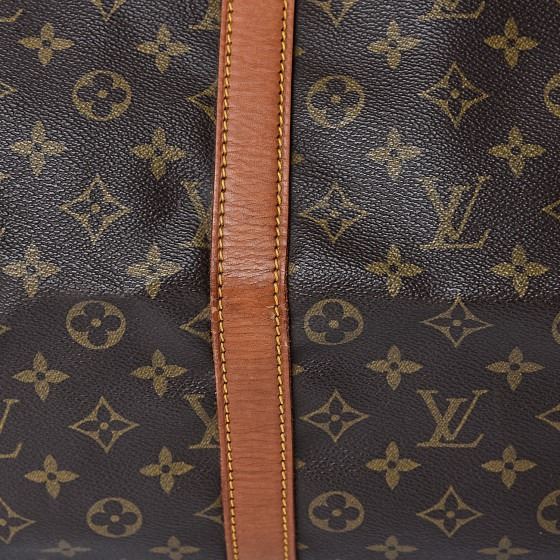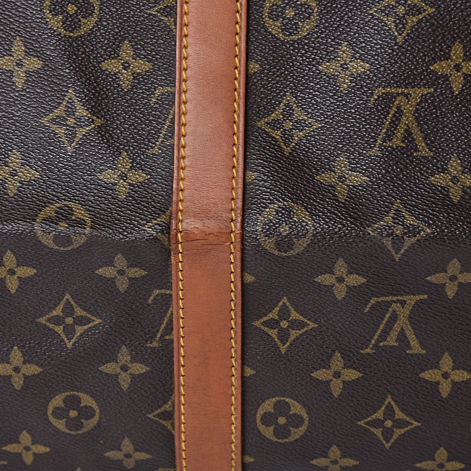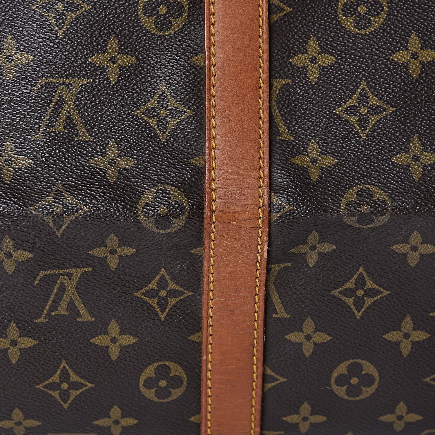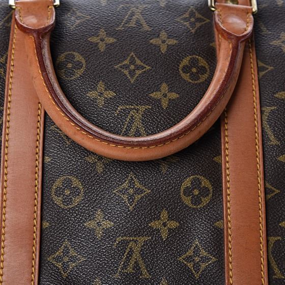 Crafted of signature Louis Vuitton monogram on toile coated canvas. The bag features a vachetta cowhide leather trim, rolled top handles and brass hardware. The top zippers open to a spacious cocoa brown fabric interior.