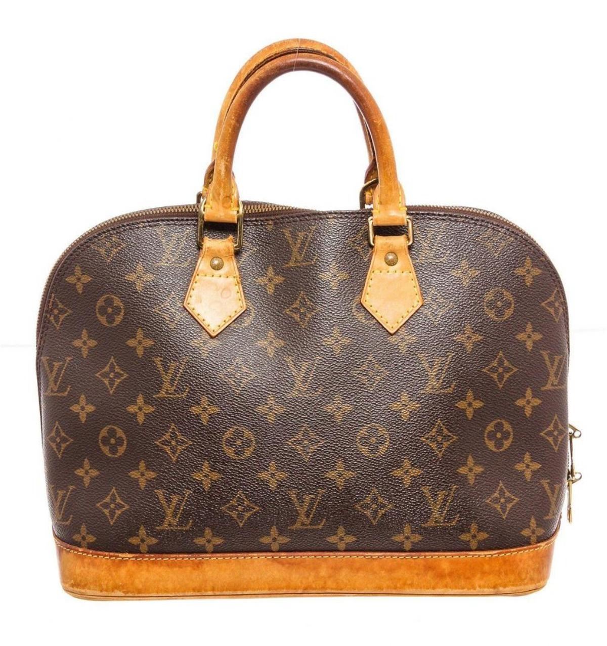 Brown and tan monogram coated canvas Louis Vuitton Alma MM with brass hardware, tan vachetta leather trim, dual rolled top handles, brown canvas lining, single slit pocket at interior wall and two-way zip closures at top. Measurements: Length: 14 in / 36 cm Width: 6.7 in / 17 cm 11 in / 28 cmCONDITION: Pre-Owned Good overall, please see photographs for detail.