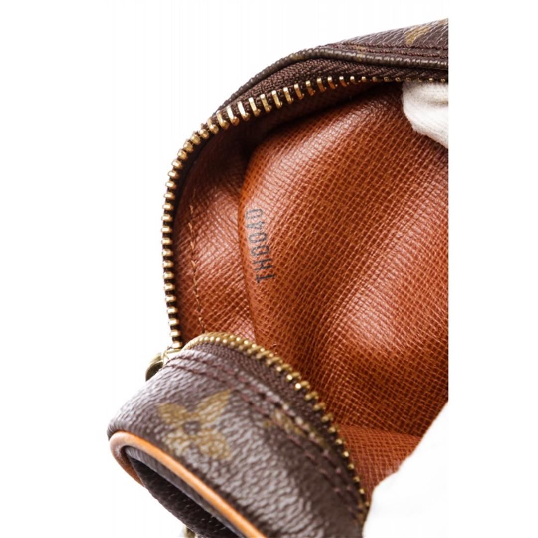 One Louis Vuitton Monogram Canvas Leather Amazon Crossbody Bag. Brown and tan monogram coated canvas Louis Vuitton Amazon bag with brass hardware, tan vachetta leather trim, flat shoulder strap, exterior zip pocket, brown leather lining and zip closure at