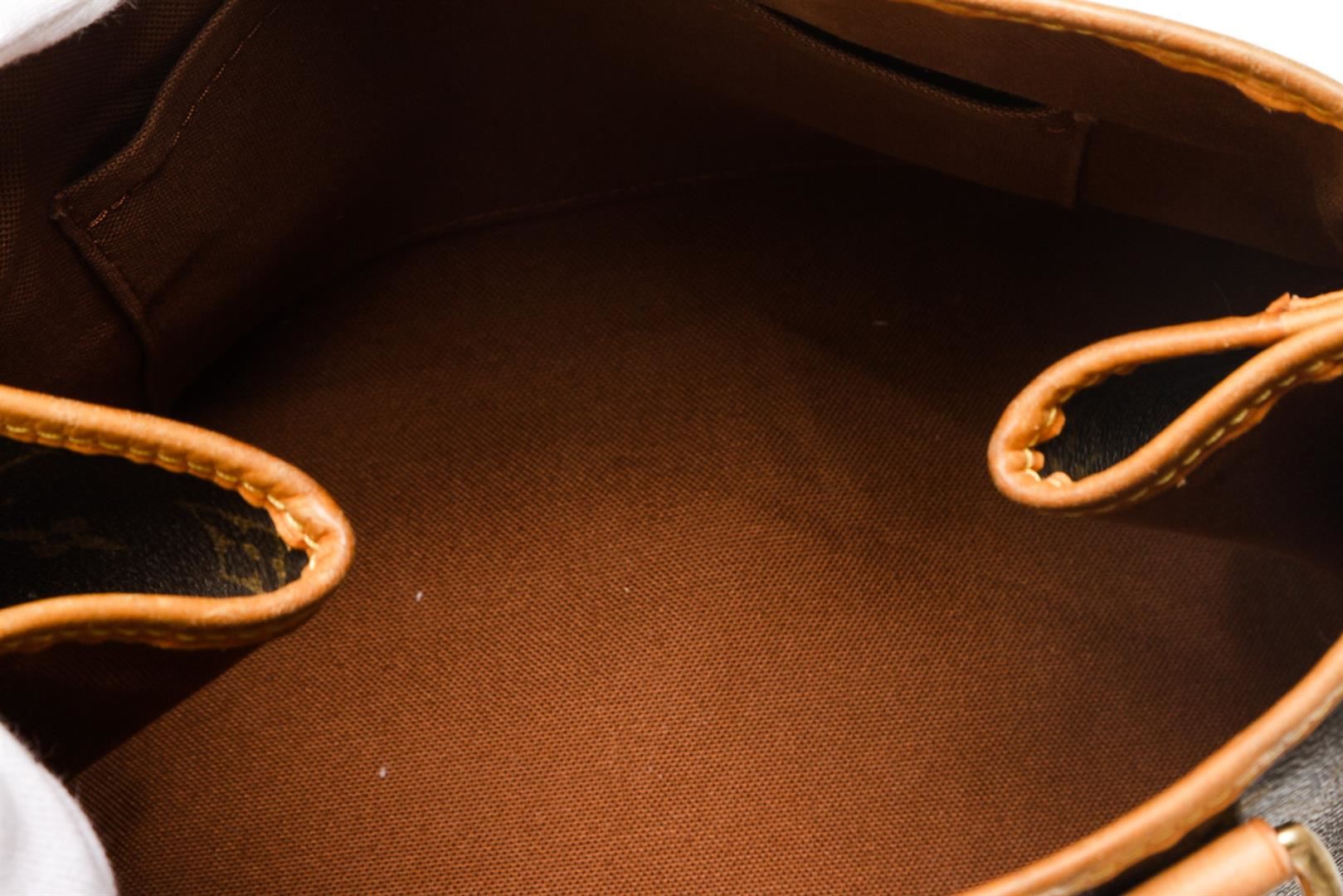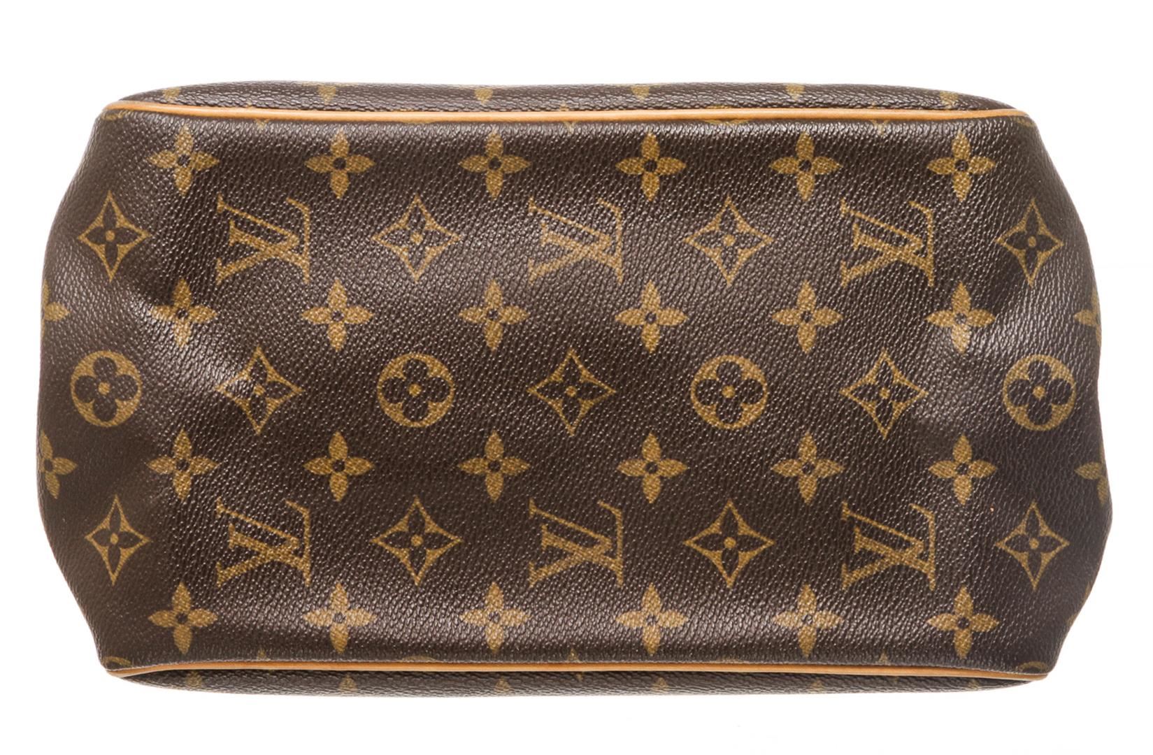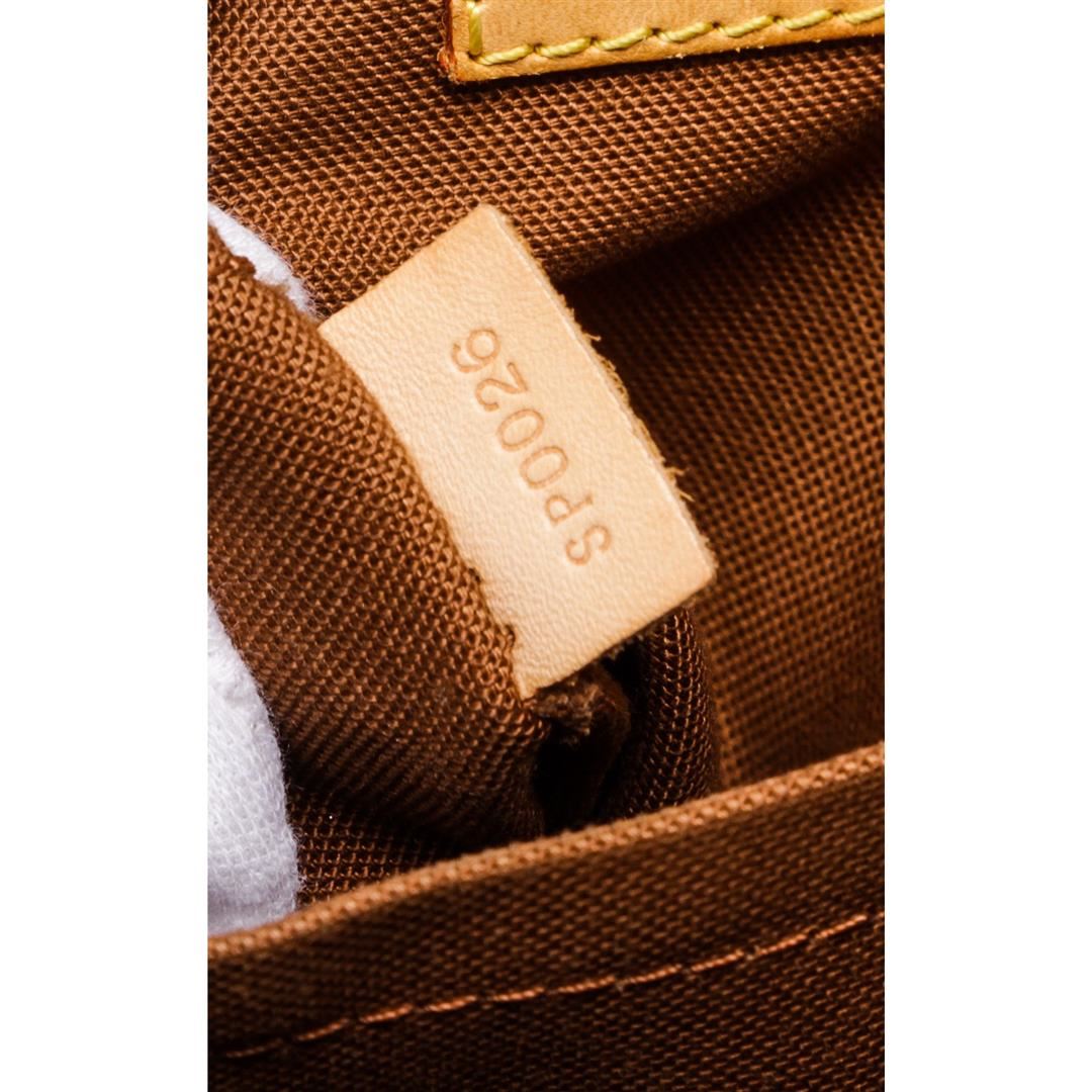 Brown and tan monogram coated canvas Louis Vuitton Batignolles Vertical bag with brass hardware, tan vachetta leather accents, dual flat shoulder straps, brown canvas lining, dual pockets at interior walls; one with zip closure and open top.