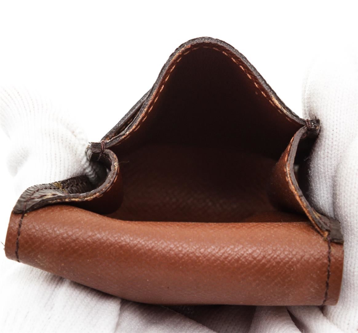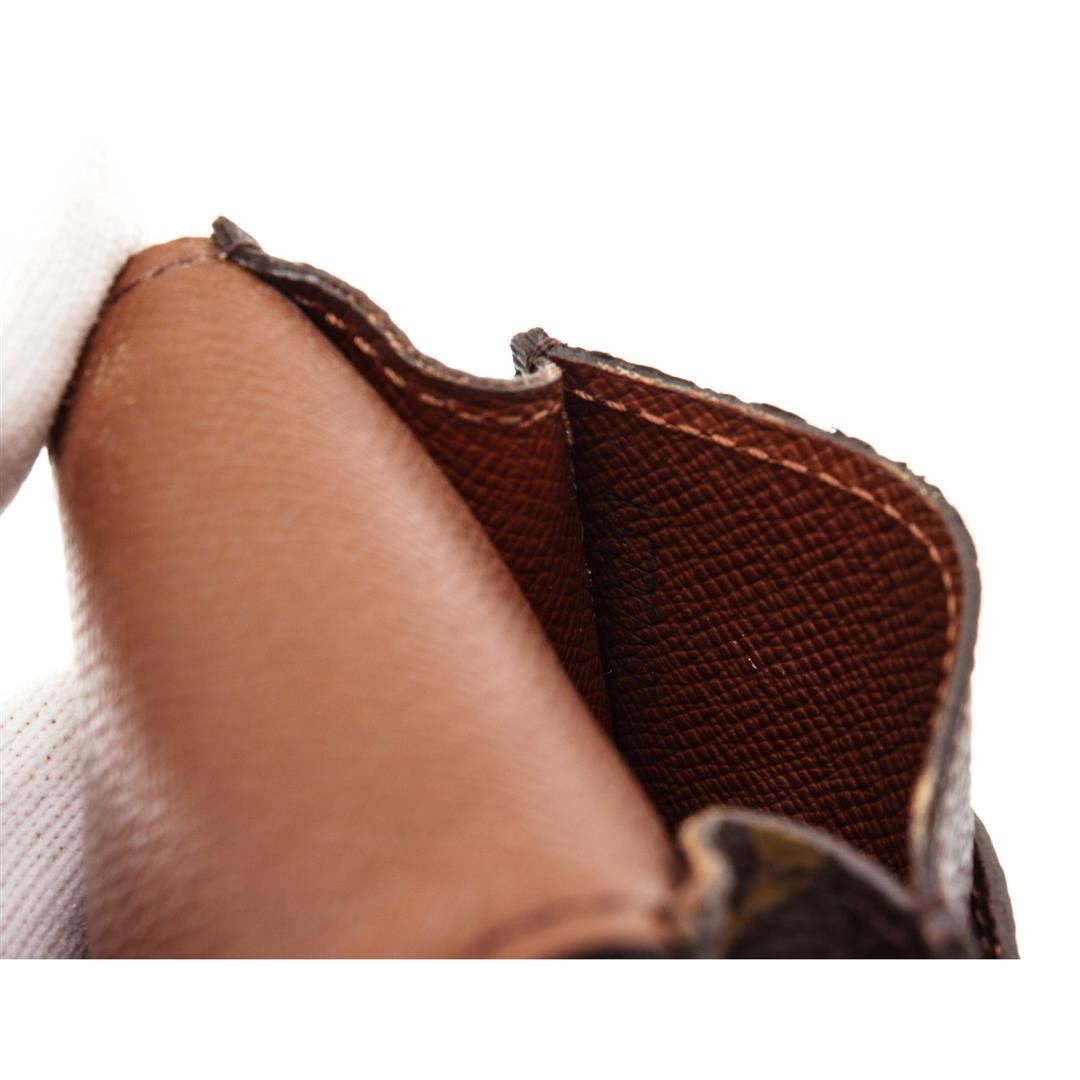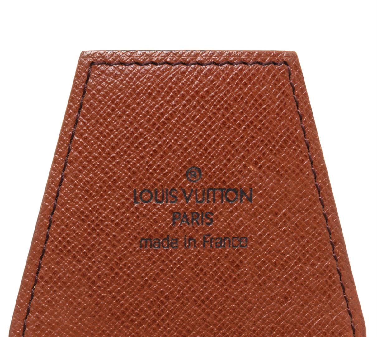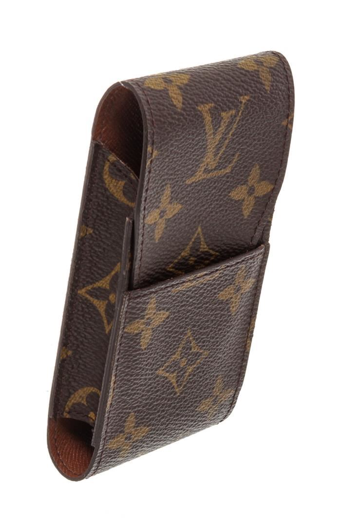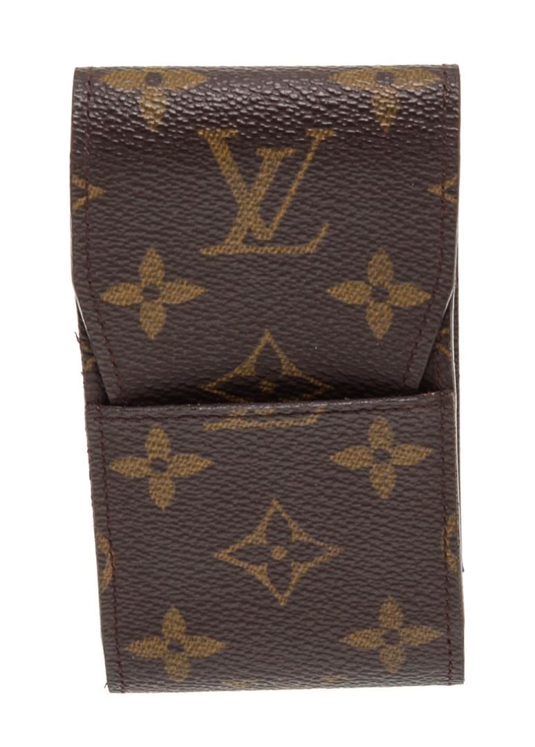 Brown and tan monogram coated canvas Louis Vuitton cigarette holder with leather lining and tab insert flap closure at front. Authentic.
