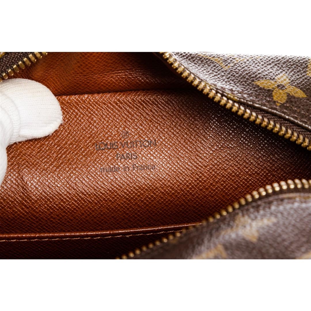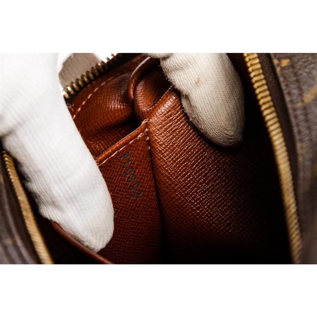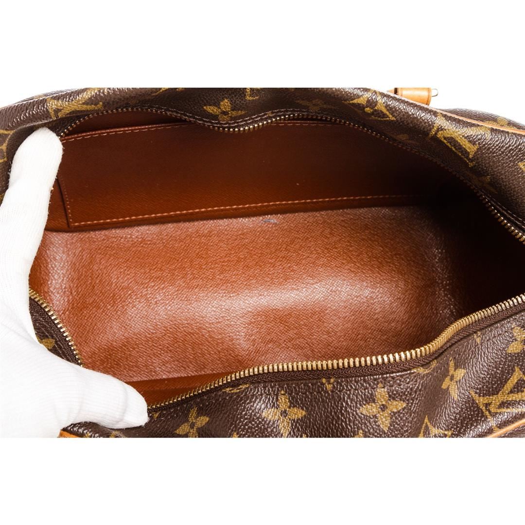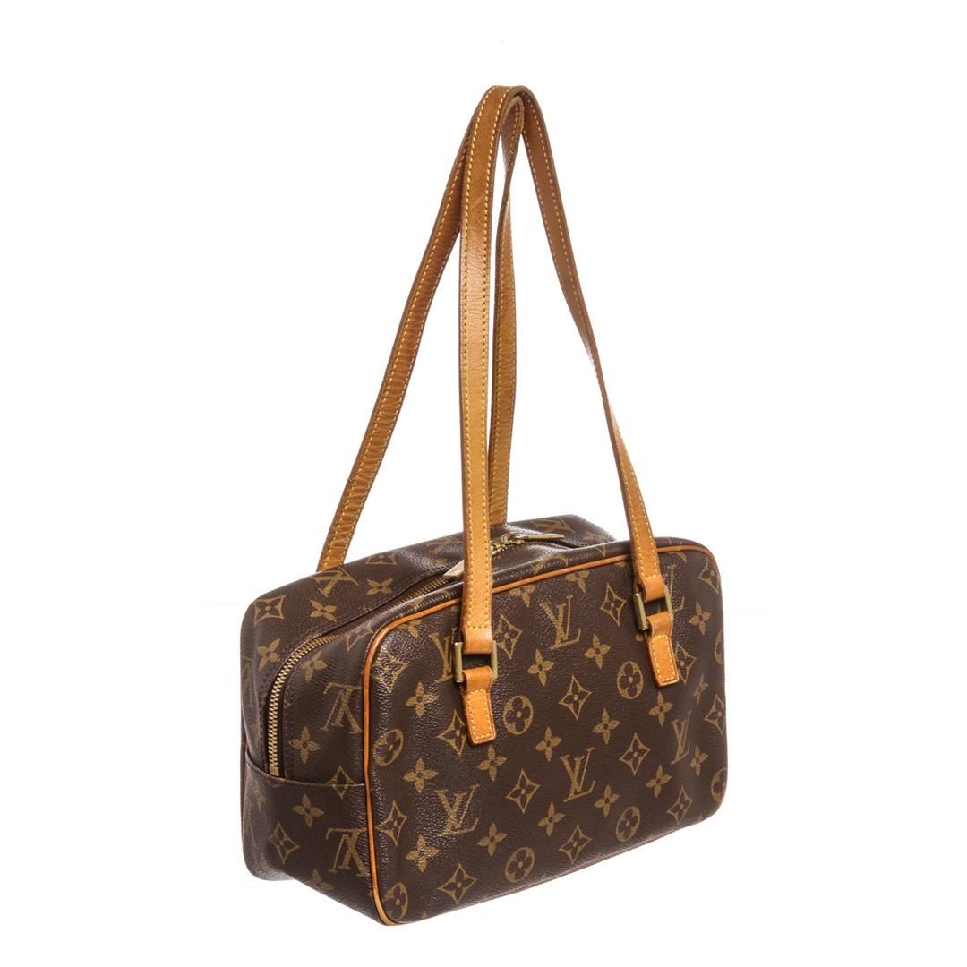 Brown and tan monogram Louis Vuitton Cite MM with brass hardware, tan vachetta leather trim, dual flat shoulder straps, exterior zip pocket at front, brown canvas lining, three pockets at interior wall and two-way zip closures at top. Item is pre-owned. Item Dimensions: 10"x4.5"x6.5"xBag Drop:9.5"/25.4cmx11.43cmx16.5cmxBag Drop:24.1cm.