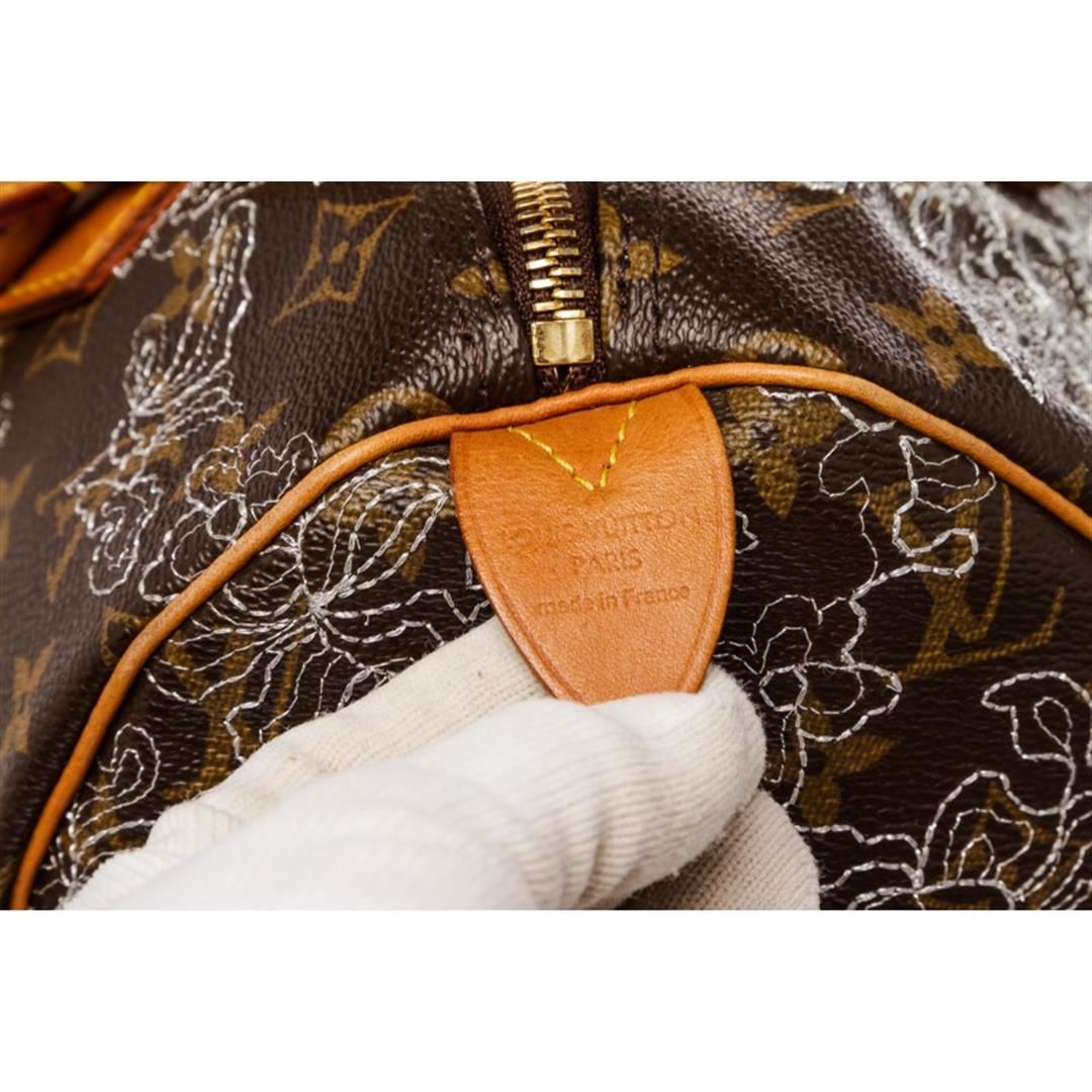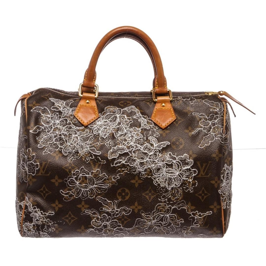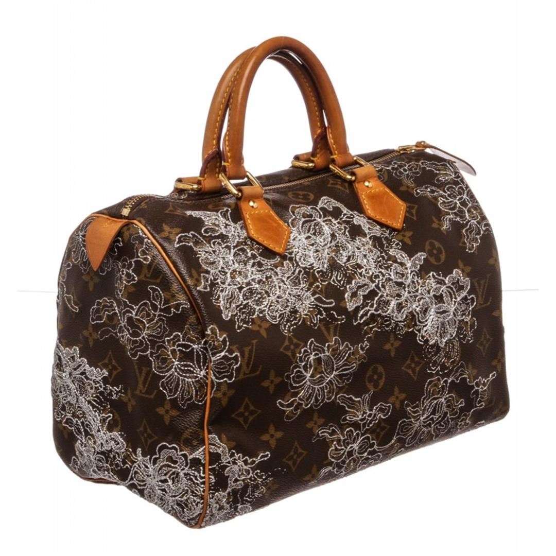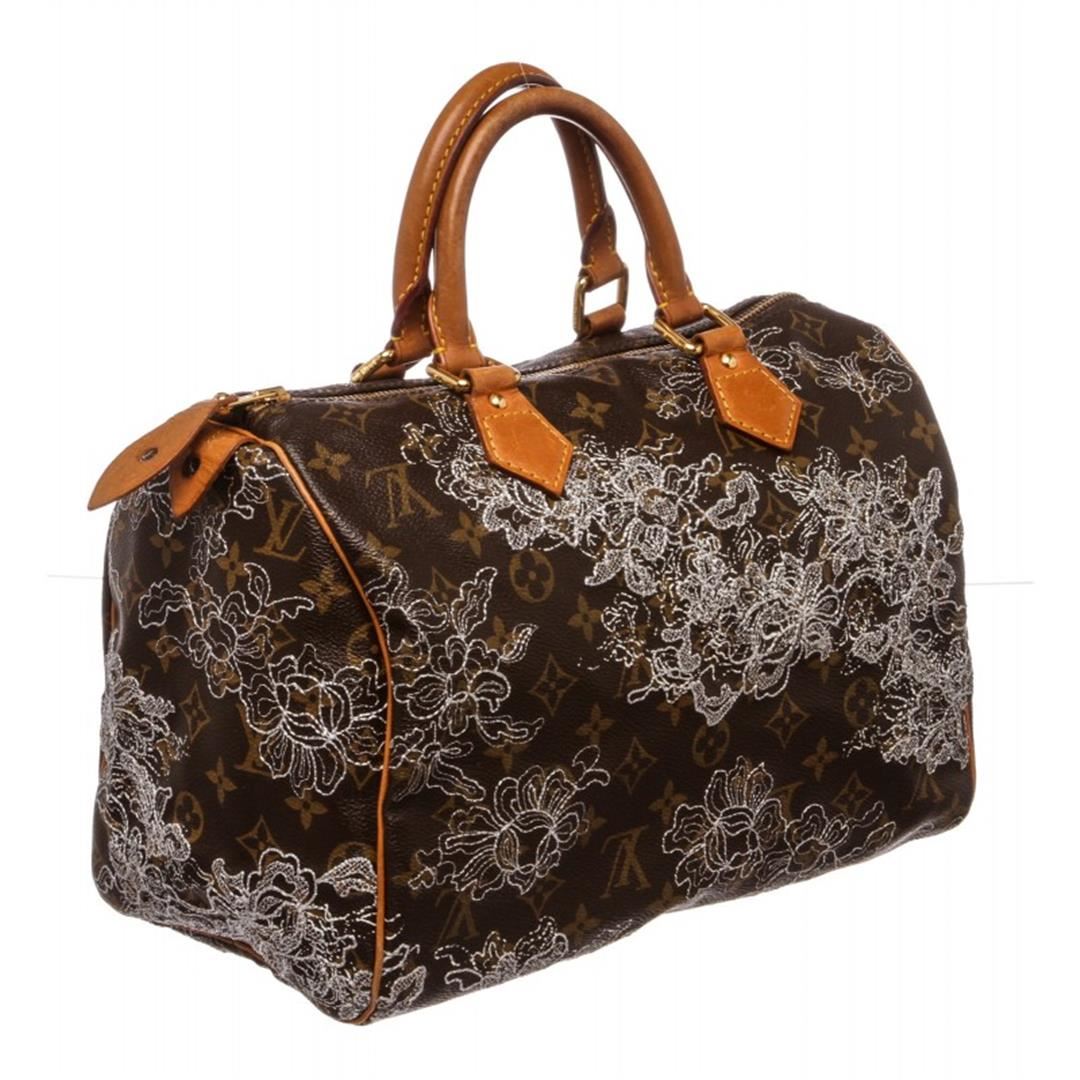Louis Vuitton Monogram Canvas Leather Dentelle Speedy 30 cm Bag Item is pre-owned.