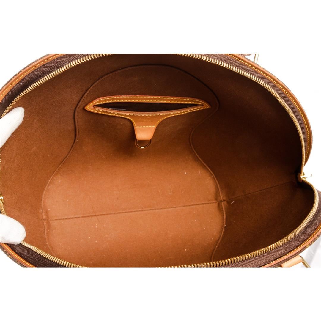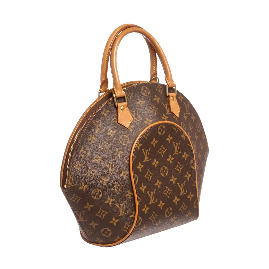 Brown and tan monogram coated canvas Louis Vuitton Monogram Ellipse MM with brass hardware, tan vachetta leather accents, dual rolled top handles, brown canvas lining, single pocket at interior wall and two-way zip closure at top. Item is pre-owned. Item Dimensions: 10"x3"x12"xBag Drop:4.5"/25.4cmx7.6cmx30.4cmxBag Drop:11.4cm.