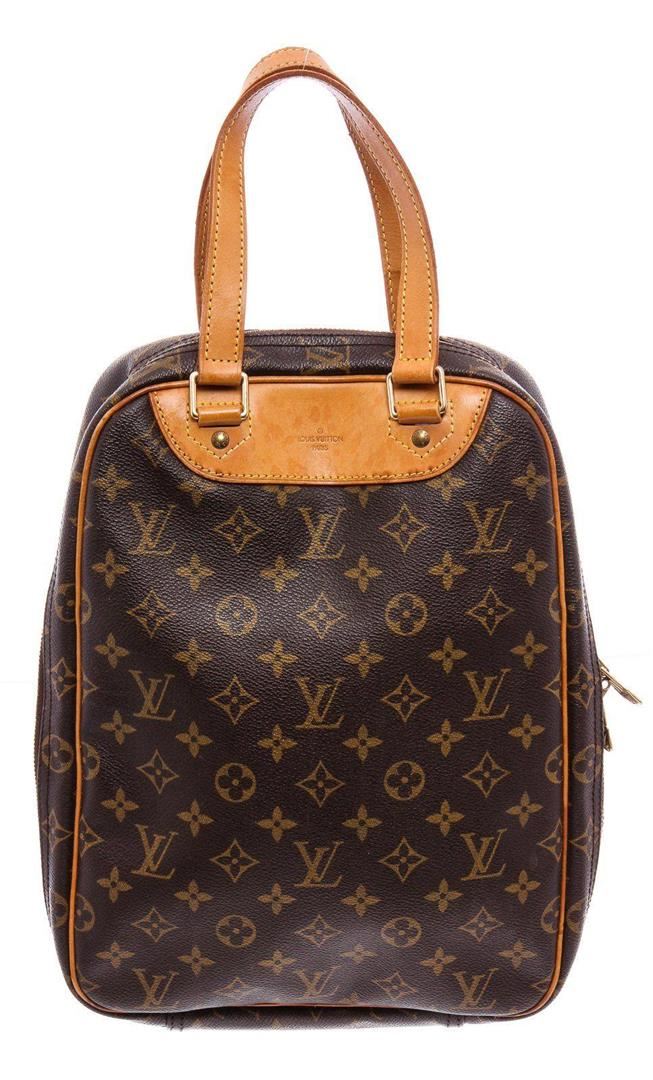 Brown and tan monogram coated canvas Louis Vuitton Excursion bag with brass hardware, tan vachetta leather trim, dual flat top handles, beige canvas lining, single interior wall pocket and two-way zip-around closure. Measurements: Length: 9.5 in / 24 cm Width: 4.75 in / 12 cm 12.5 in / 32 cmCONDITION: Pre-Owned Good overall, please see photographs for detail.