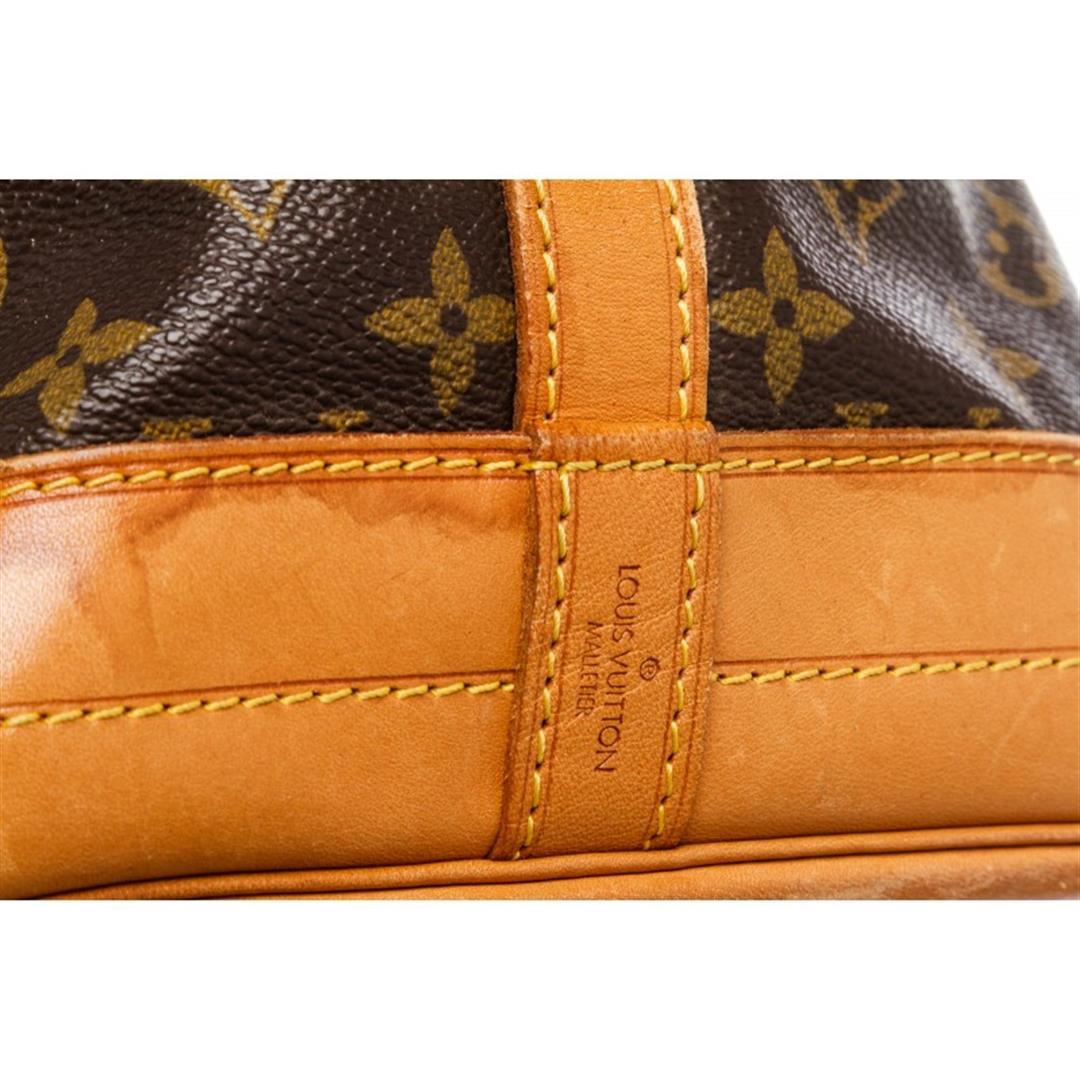 One Louis Vuitton Monogram Canvas Leather Noe GM Drawstring Bag. Brown and tan monogram coated canvas Louis Vuitton Noe GM with brass hardware, tan vachetta leather trim, single adjustable flat shoulder strap, brown canvas lining and drawstring closure at top. Item is pre-owned.