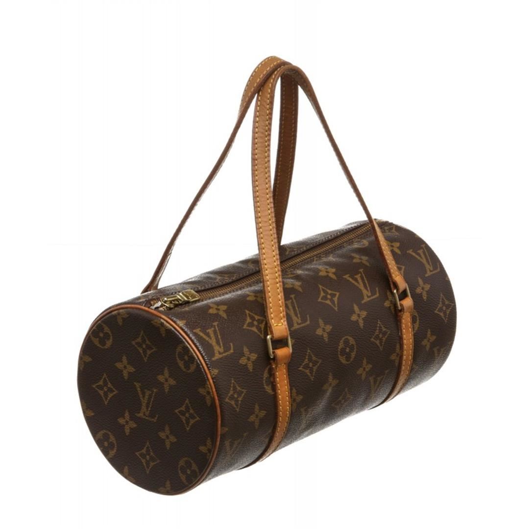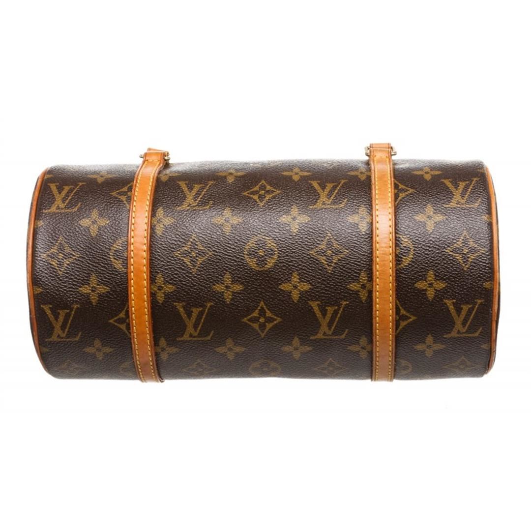 One Louis Vuitton Monogram Canvas Leather Papilon 26 cm Shoudler Bag. Brown and tan monogram coated canvas Louis Vuitton Papillon with brass hardware, dual flat top handles, tan vachetta leather trim throughout, brown coated lining and zip closure at top. Item is pre-owned.