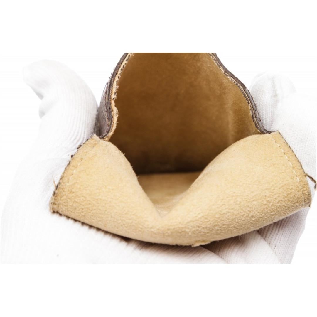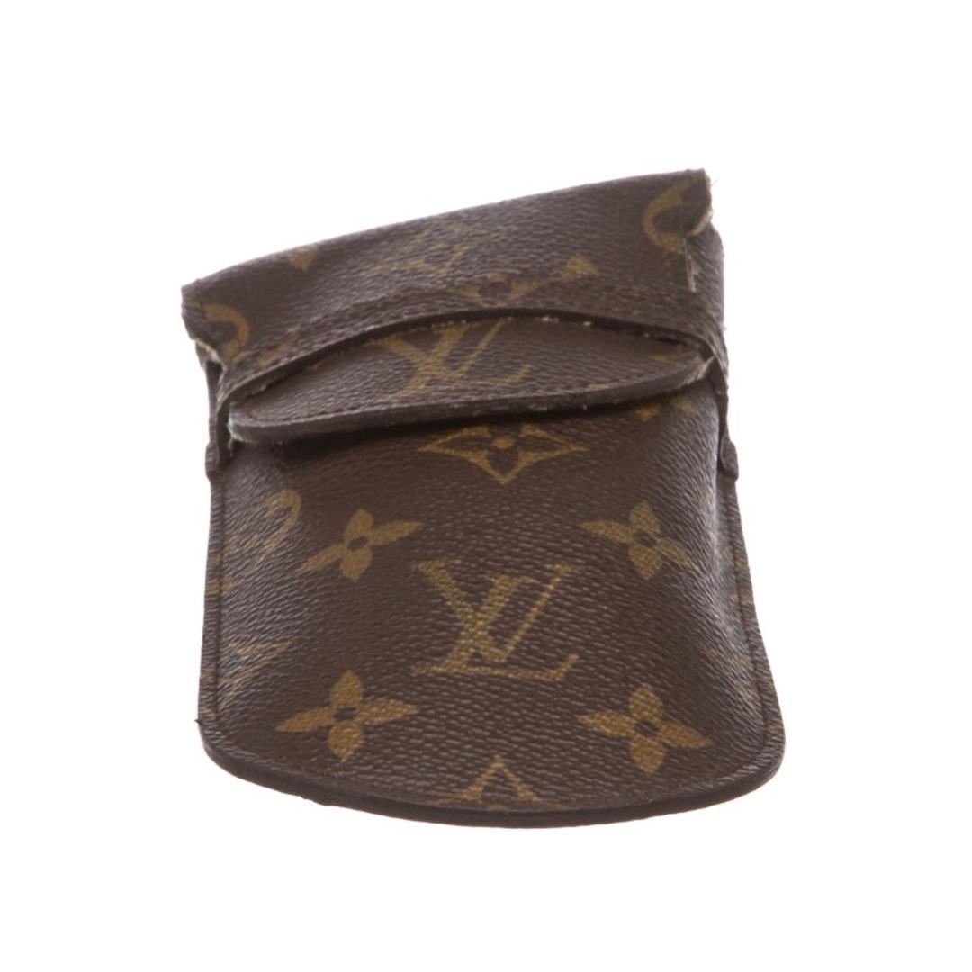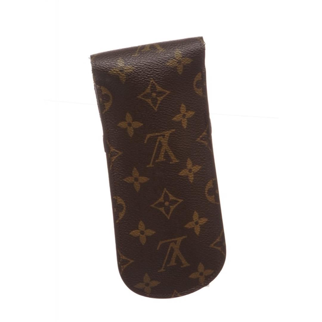 Brown leather monogram pen case from Louis Vuitton Vintage featuring a front flap with pull through closure. Item is pre-owned.