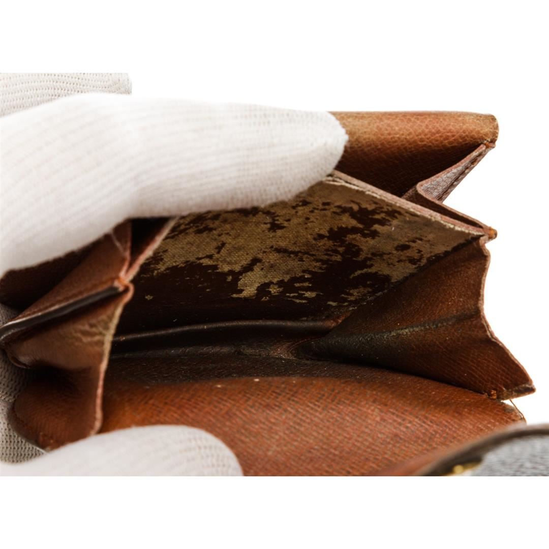 Louis Vuitton monogram coated canvas Porte-Monnaie Gousset coin purse with gold-tone hardware, brown leather interior and snap button closure. Authentic.