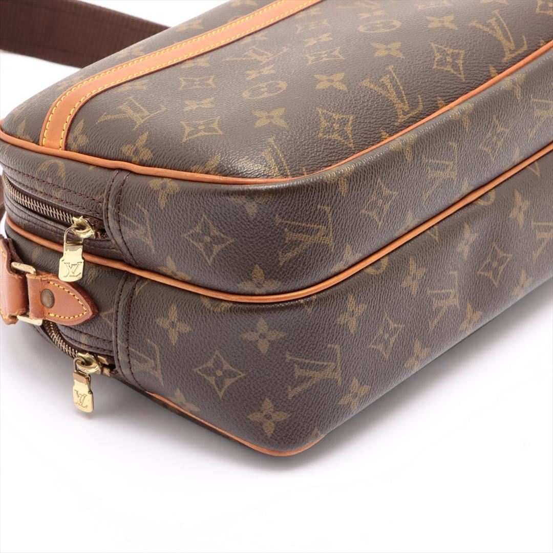 One Louis Vuitton Monogram Canvas Leather Reporter PM Bag. Item is sold AS-IS. All available information is listed in the description and shown in the photo. Brown and tan monogram coated canvas Louis Vuitton Reporter PM with brass hardware, tan vachetta leather accents, adjustable flat shoulder strap, single exterior pocket, beige coated canvas interior, dual interior compartments, single pocket at interior wall and dual zip closures at top. 10"x4"x8"xStrap Drop:21"/25.4cmx10.1cmx20.3cmxStrap Drop:53.3cm