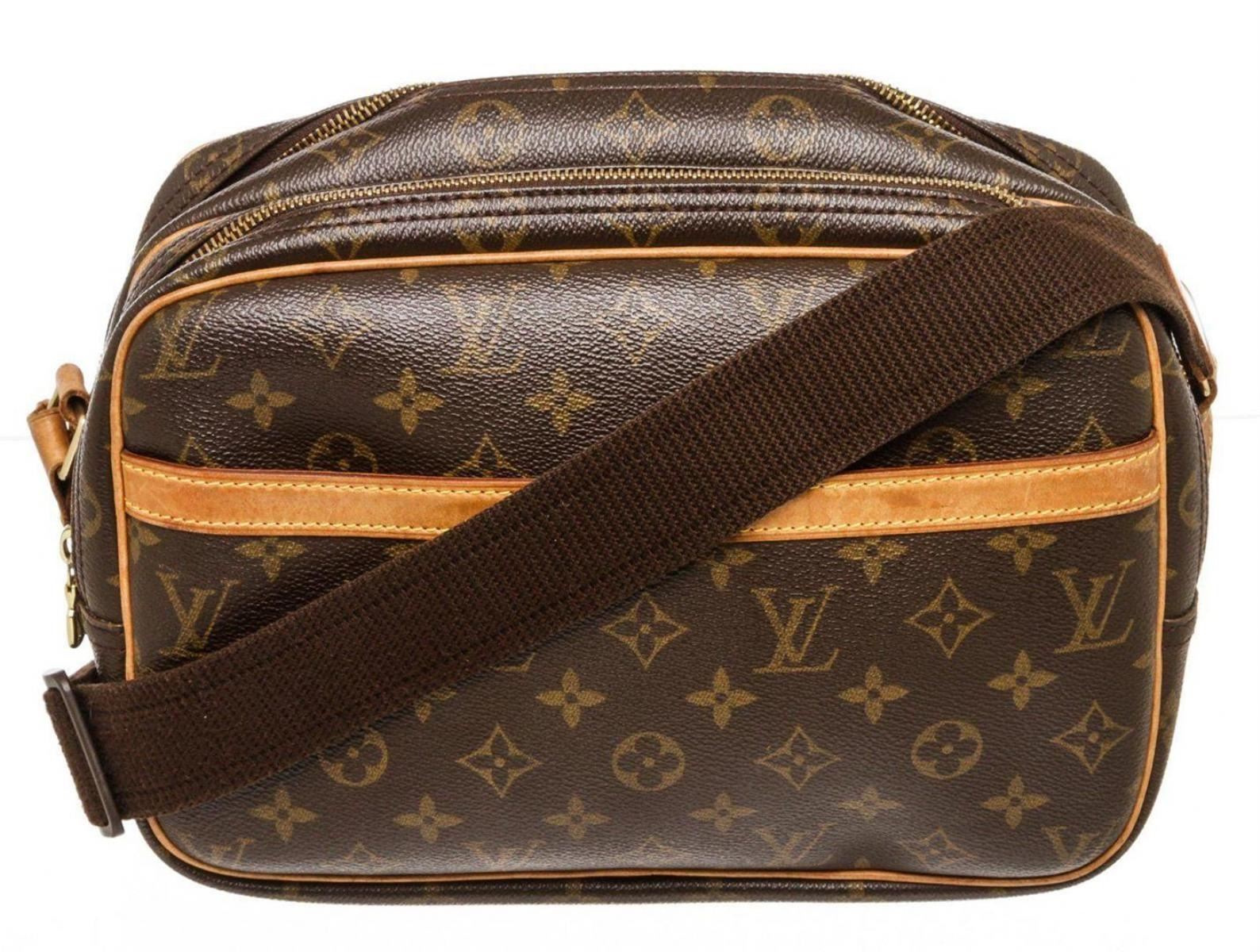 Brown and tan monogram coated canvas Louis Vuitton Reporter PM with brass hardware, tan vachetta leather accents, adjustable flat shoulder strap, single exterior pocket, beige coated canvas interior, dual interior compartments, single pocket at interior wall and dual zip closures at top.      Measurements:  Length: 10 in / 25 cm  Width: 4 in / 10 cm  8 in / 20 cmCONDITION: Pre-Owned Good overall, please see photographs for detail.