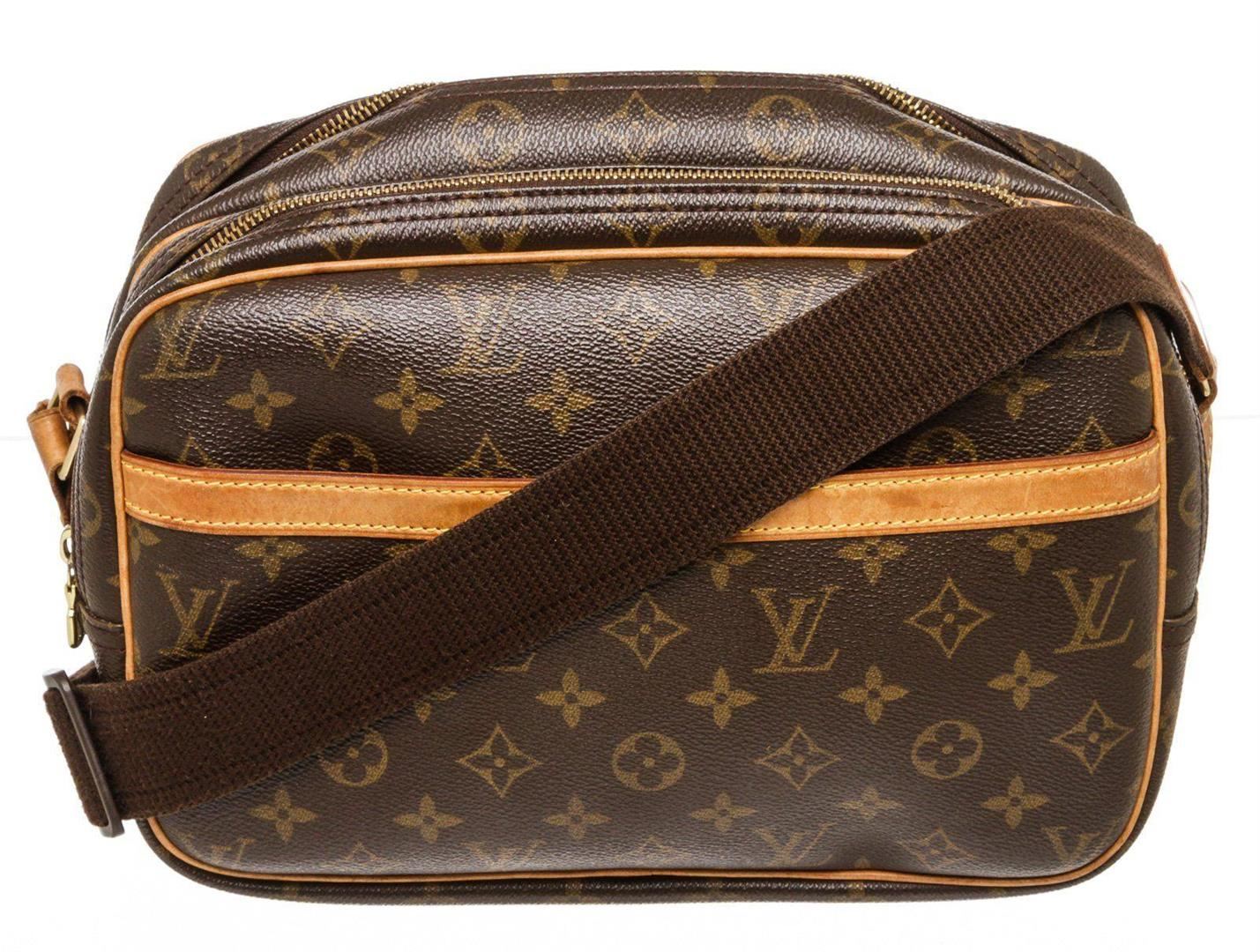 Brown and tan monogram coated canvas Louis Vuitton Reporter PM with brass hardware, tan vachetta leather accents, adjustable flat shoulder strap, single exterior pocket, beige coated canvas interior, dual interior compartments, single pocket at interior wall and dual zip closures at top. Measurements: Length: 10 in / 25 cm Width: 4 in / 10 cm 8 in / 20 cmCONDITION: Pre-Owned Good overall, please see photographs for detail.