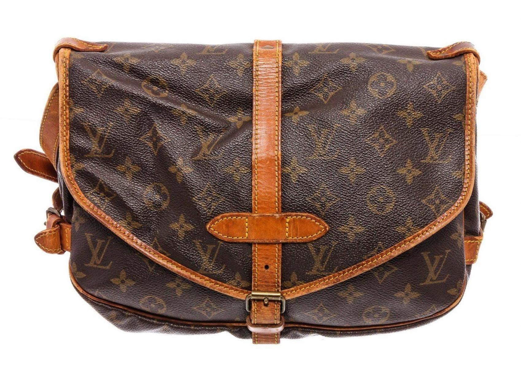 Brown and tan monogram coated canvas Louis Vuitton Saumur 28 with brass hardware, tan vachetta leather trim, single flat adjustable shoulder strap with shoulder guard, dual interior compartments, brown canvas lining, single slit pocket at interior wall and dual buckle closures at front. Measurements: Length: 11.5 in / 29 cm Width: 5 in / 13 cm 8.5 in / 22 cmCONDITION: Pre-Owned Good overall, please see photographs for detail.