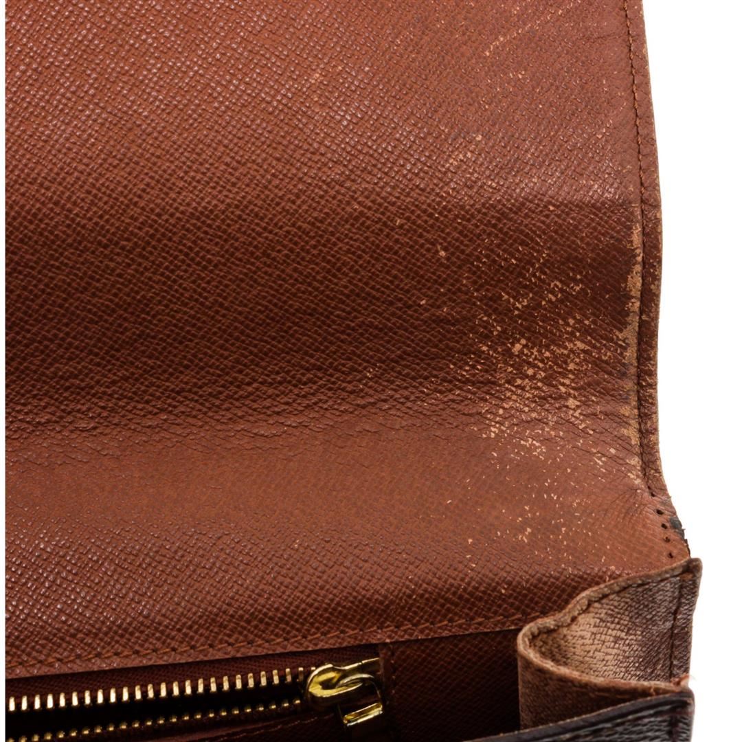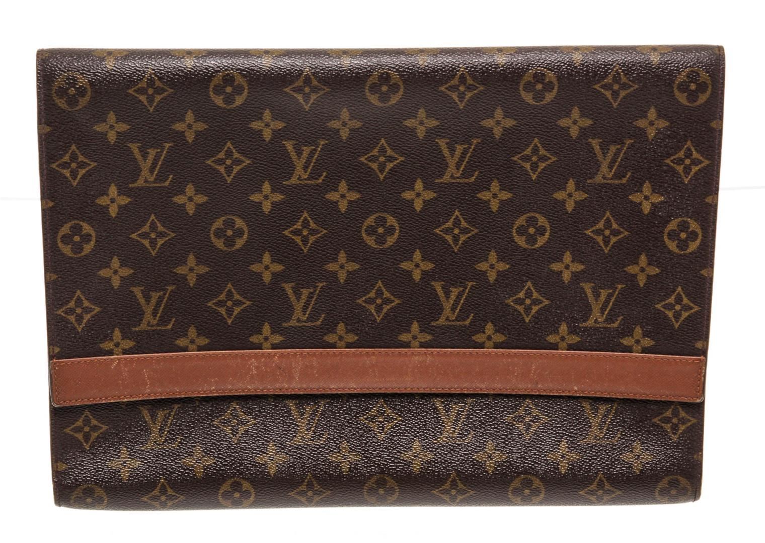 Louis Vuitton brown monogram coated canvas vintage document holder with brown Taiga leather trim and lining, zip pocket along interior wall. Authentic.