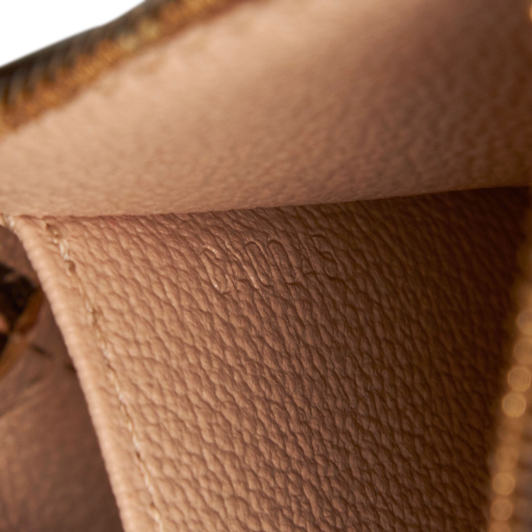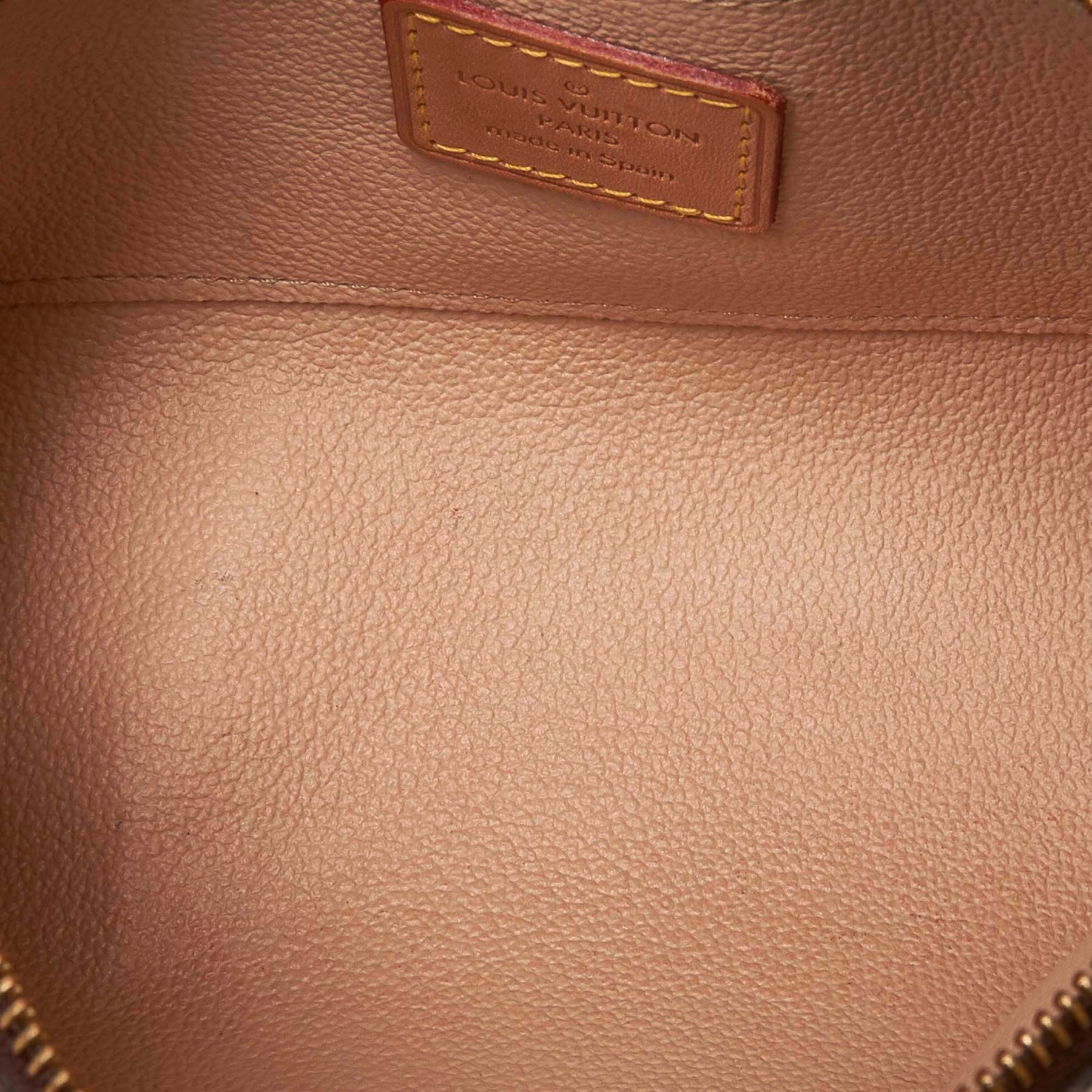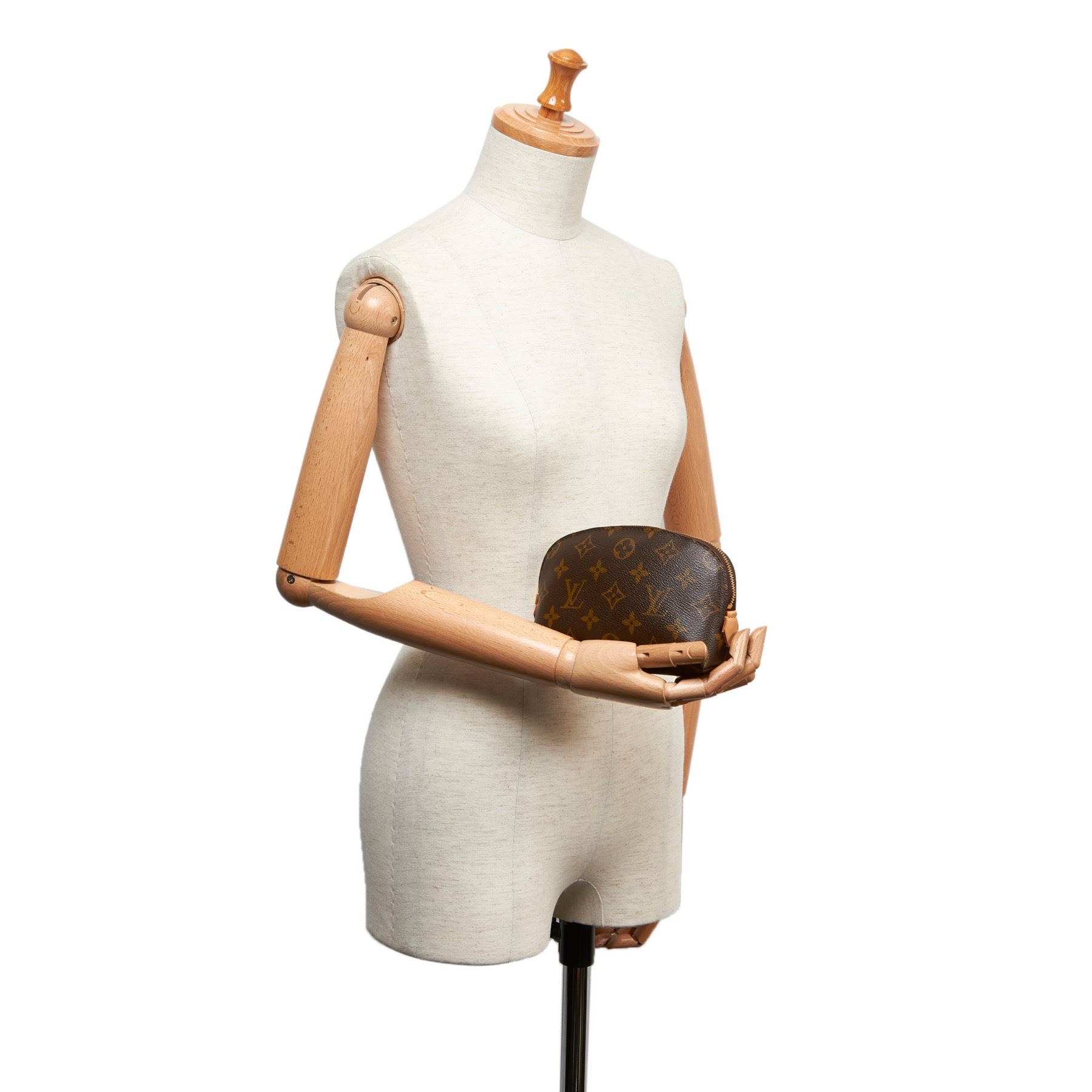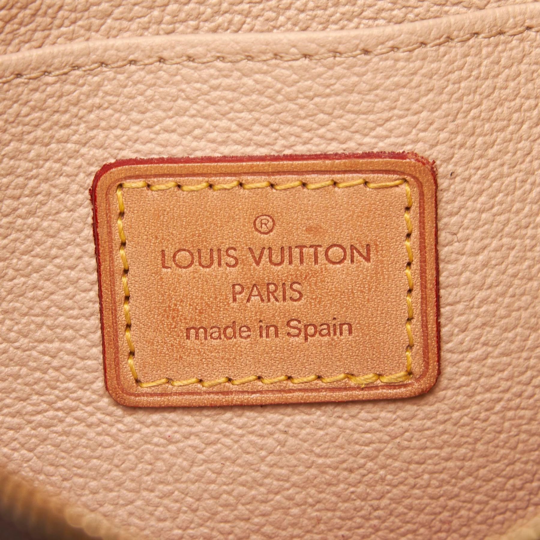 This cosmetic case features a monogram canvas body, a top zip closure, and an interior slip pocket. Canvas x Monogram Canvas Brown Exterior bottom is scratched. Exterior corners is scratched. Exterior side is stained. Interior lining is stained. Interior pocket is stained. Size: 17 x 12 x 6 Card: NO. Louis Vuitton pieces do not come with an authenticity card—please refer to the production date code within the bag for its age and as an authenticity reference. Made in: Spain