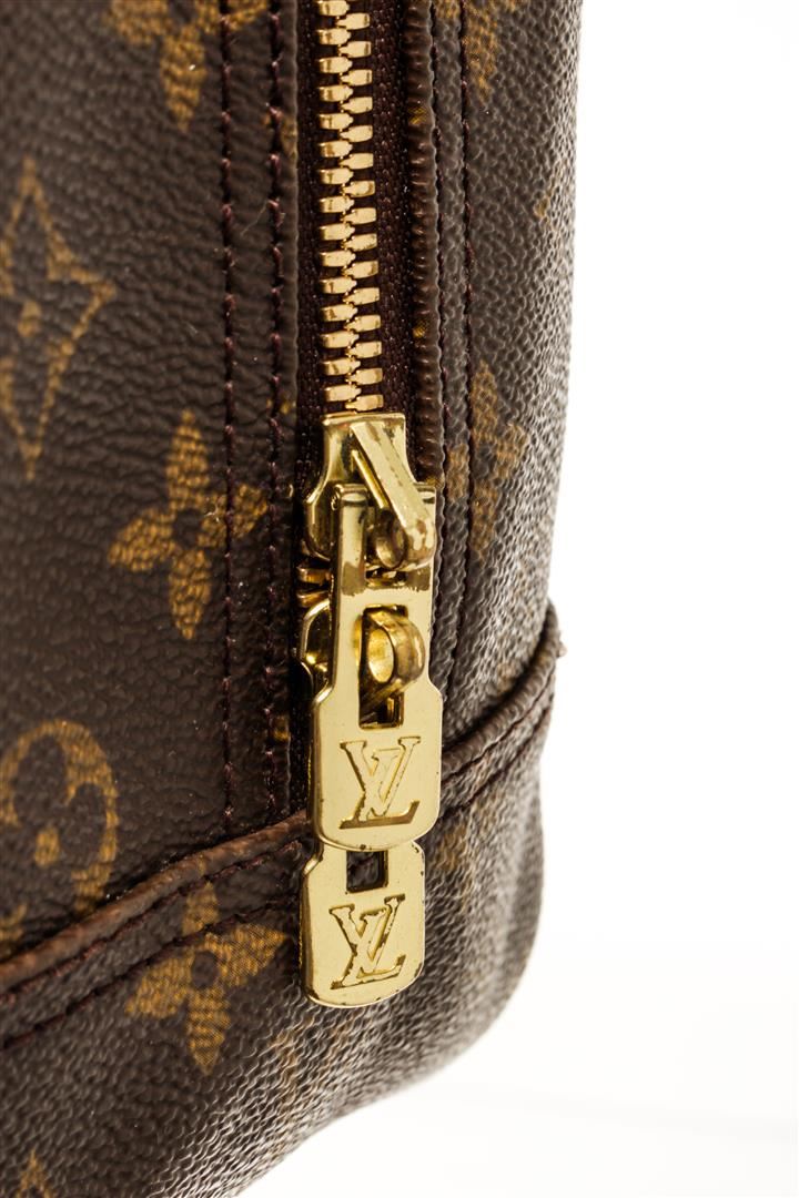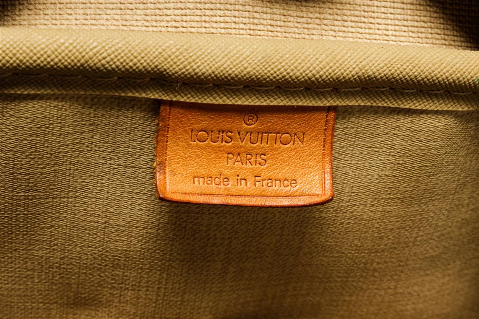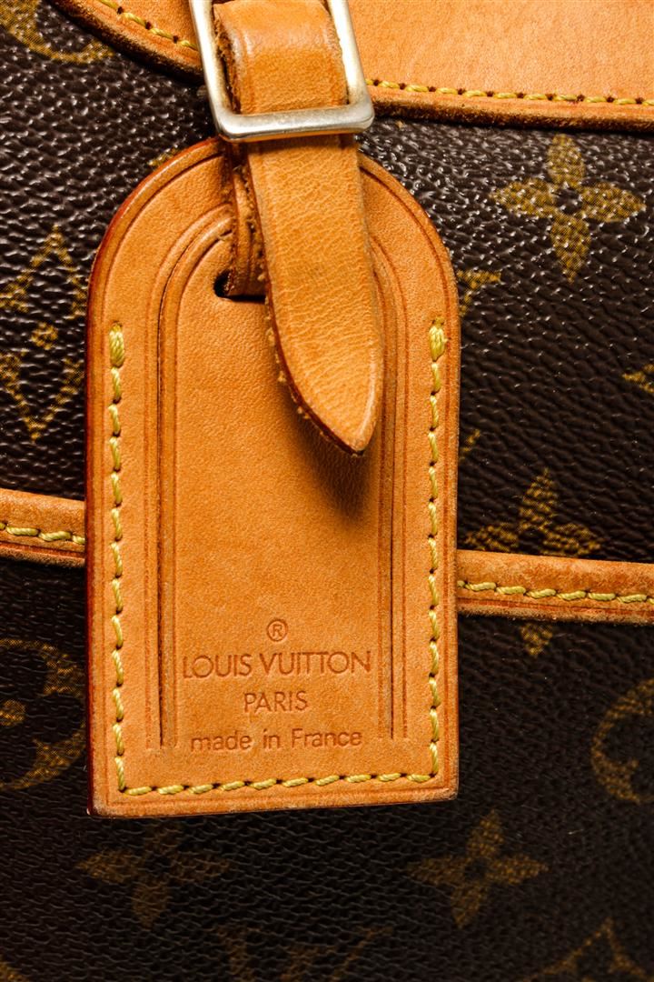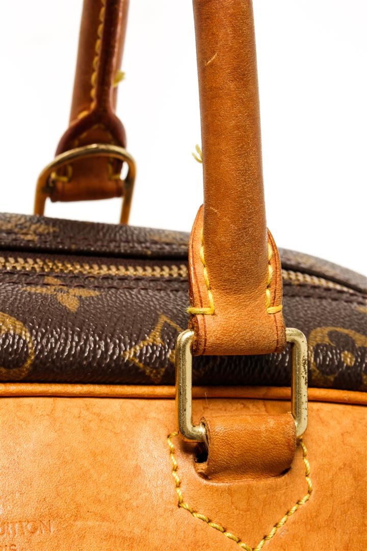 One Louis Vuitton Monogram Deauville. Item is sold AS-IS. All available information is listed in the description and shown in the photo. Louis Vuitton Monogram Deauville with coated canvas exterior, beige fabric lining, vachetta leather top handles, gold-tone hardware, zipper closure, and one main compartment with multiple slip pockets.