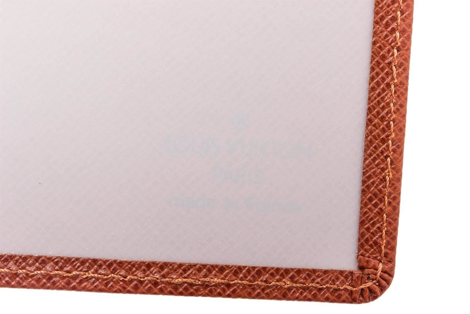 Louis Vuitton Red Monogram ID Holder with gold-tone hardware, tan vachetta leather trim, interior slip pockets, adjustable strap, and flap closure.