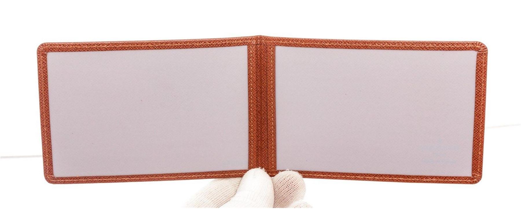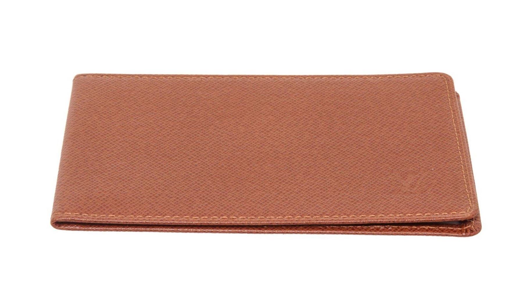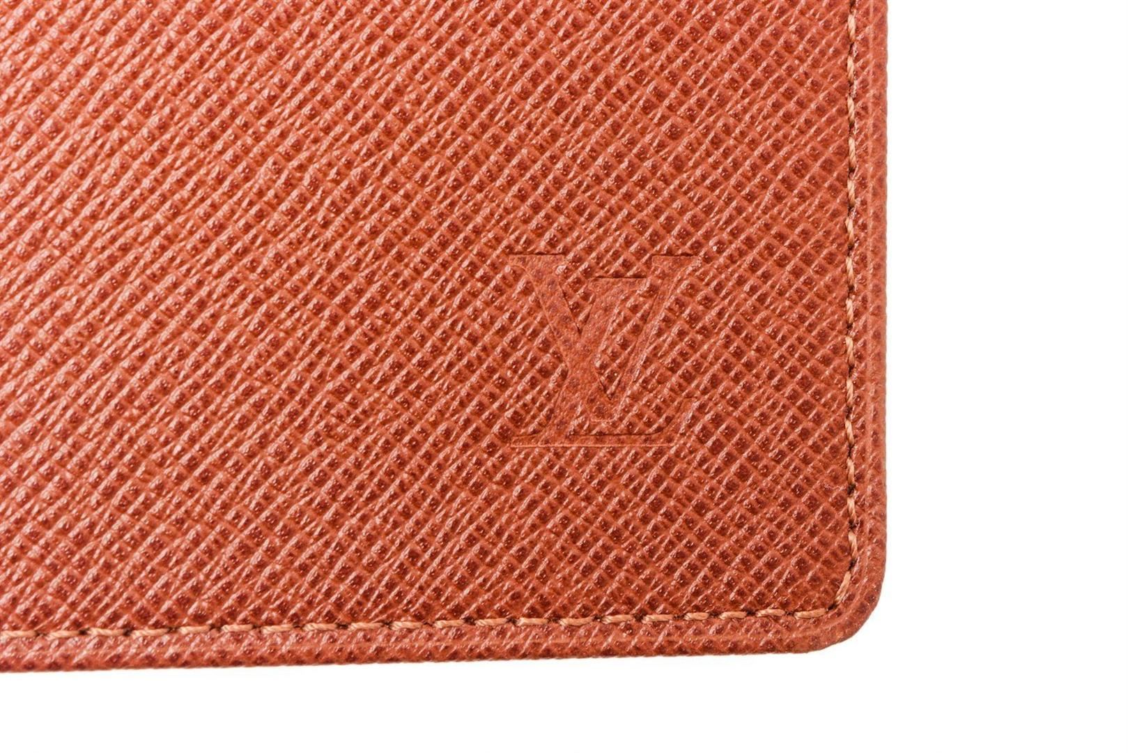Louis Vuitton Red Monogram ID Holder with gold-tone hardware, tan vachetta leather trim, interior slip pockets, adjustable strap, and flap closure.