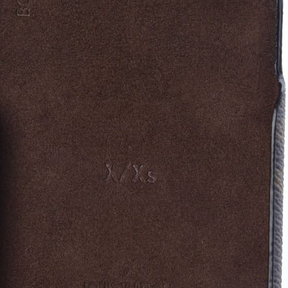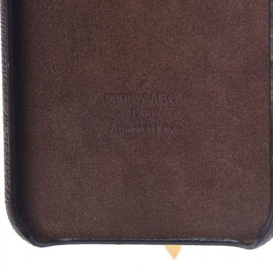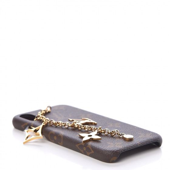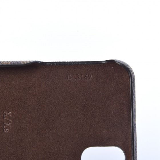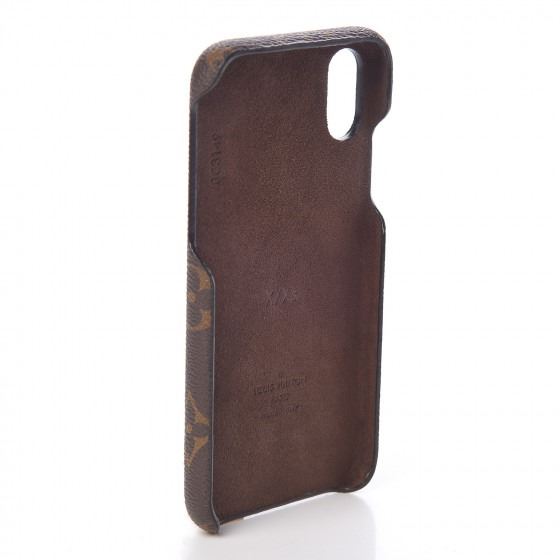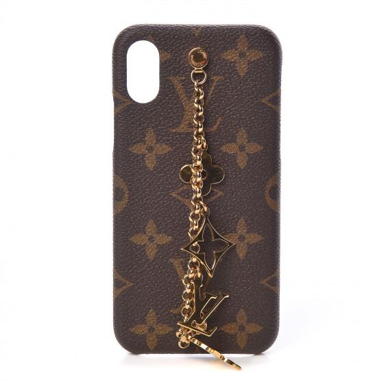 Crafted of monogram coated canvas, and features a polished brass chain link strap with Louis Vuitton monogram charms. The case holds an iPhone X/XS perfectly with a brown microfiber interior.
