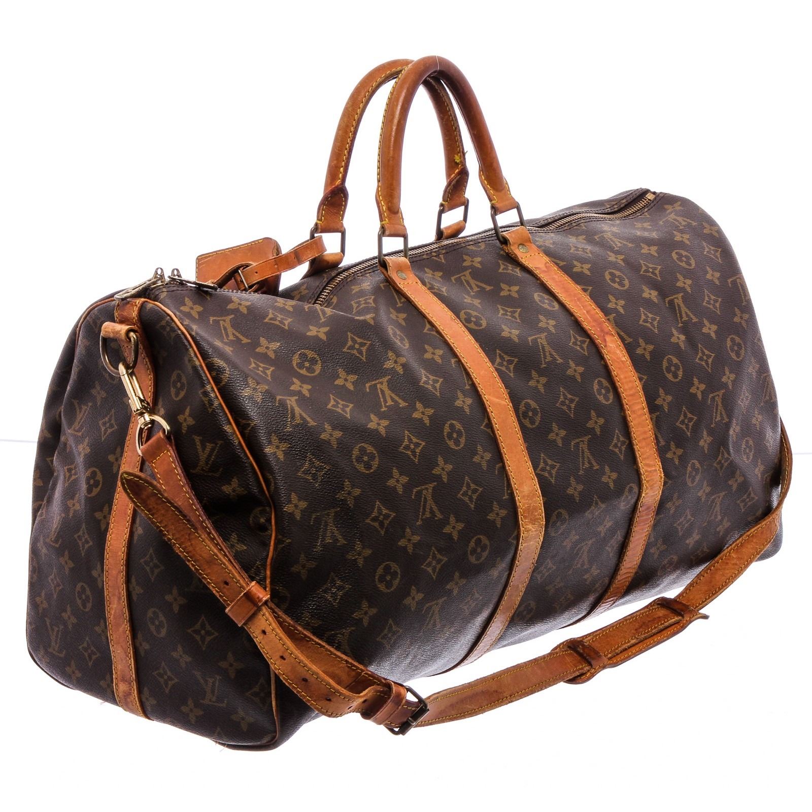 Style: Louis Vuitton Monogram Canvas Leather Keepall 55 cm Bandouliere Duffle Bag Luggage