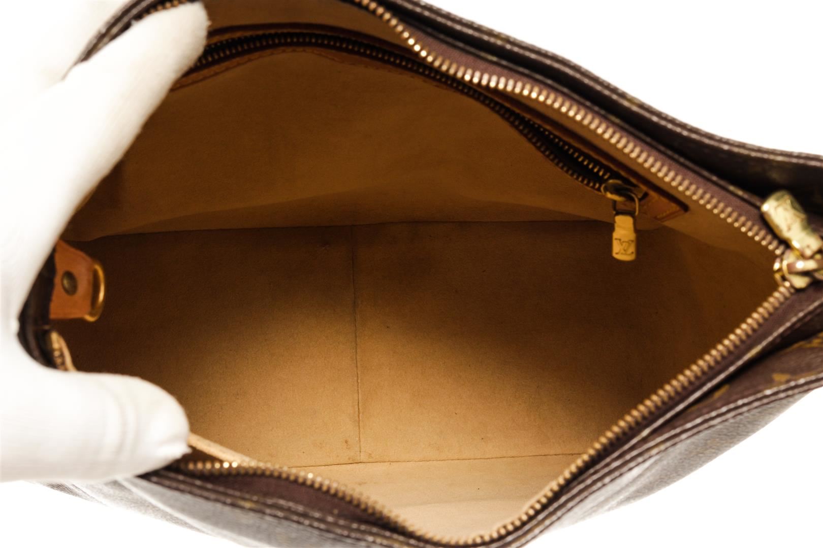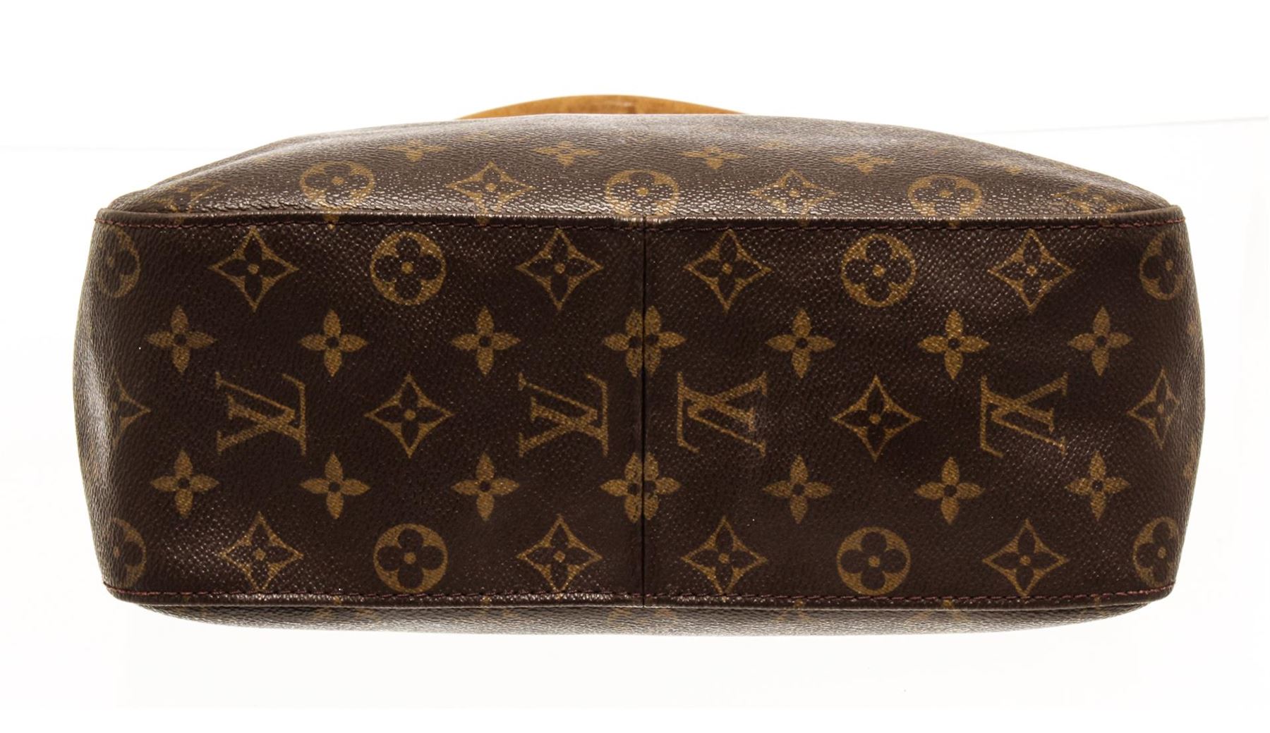 One Louis Vuitton Monogram Looping GM Handbag. Item is sold AS-IS. All available information is listed in the description and shown in the photo. Louis Vuitton Monogram Looping GM handbag with brown coated canvas exterior, beige suede lining, contrasting vachetta leather top handle, gold-tone hardware, zipper closure, and one main compartment with one zip pocket.