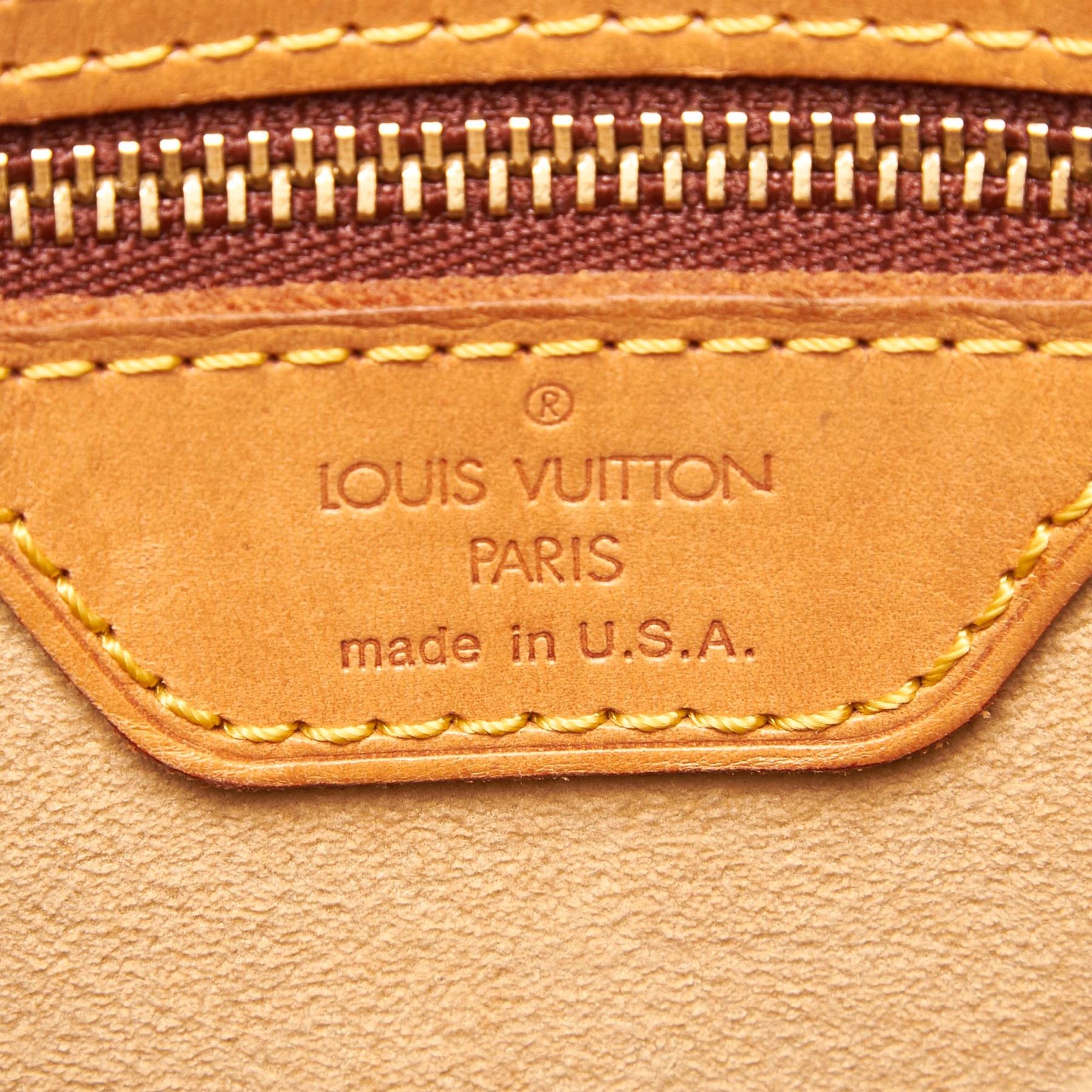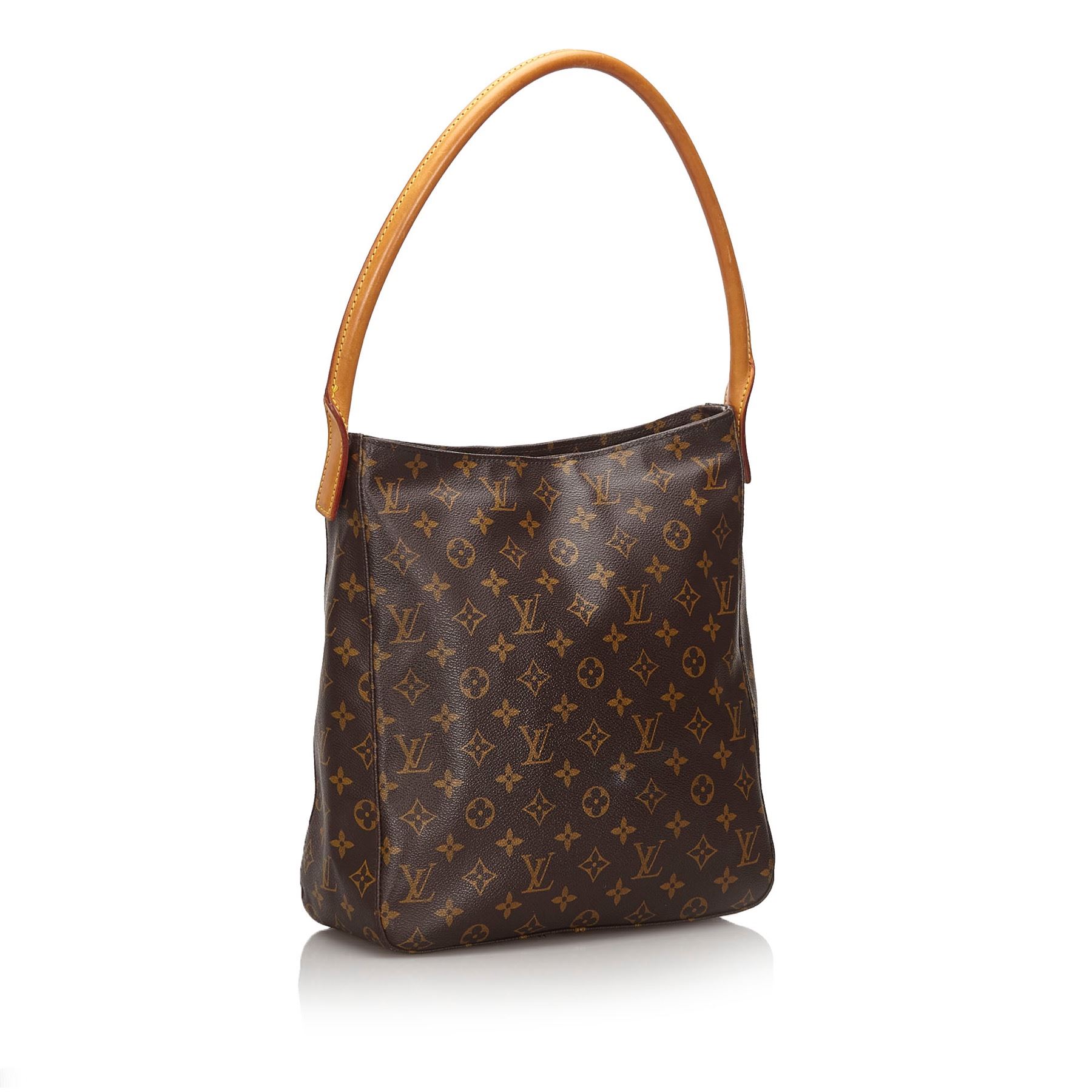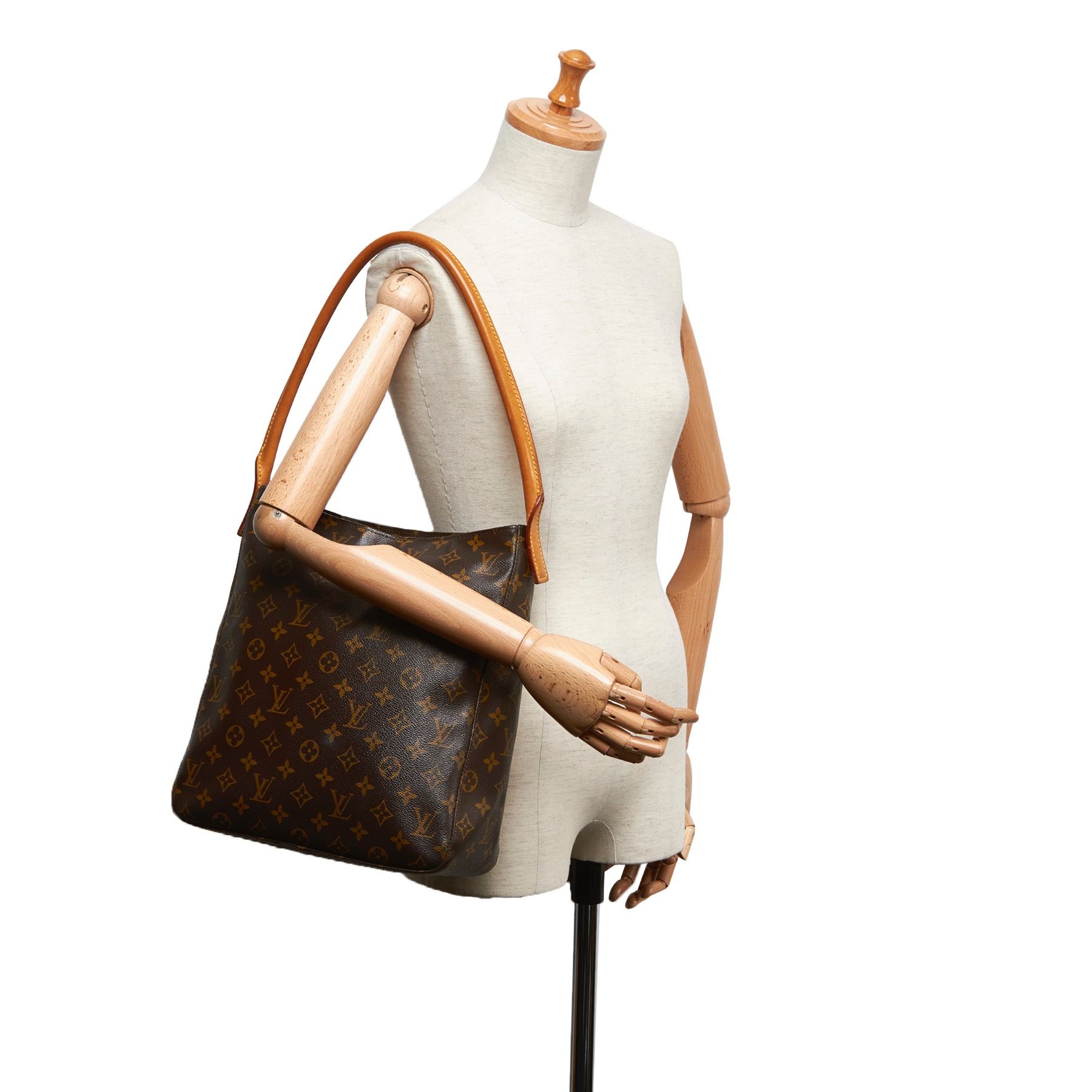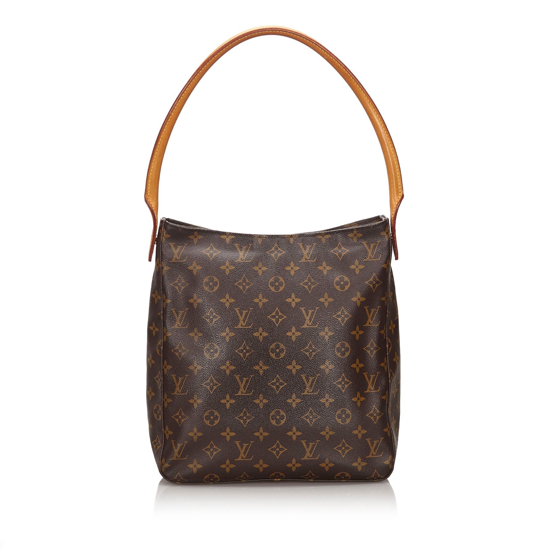 The Looping GM features a monogram canvas body, a single rolled vachetta strap, a top zip closure, and interior open and zip pockets. Canvas x Monogram Canvas x Leather Brown Exterior handle is scratched. Zipper is scratched. Size: 30 x 33 x 12 Card: NO. Louis Vuitton pieces do not come with an authenticity card—please refer to the production date code within the bag for its age and as an authenticity reference. Made in: France