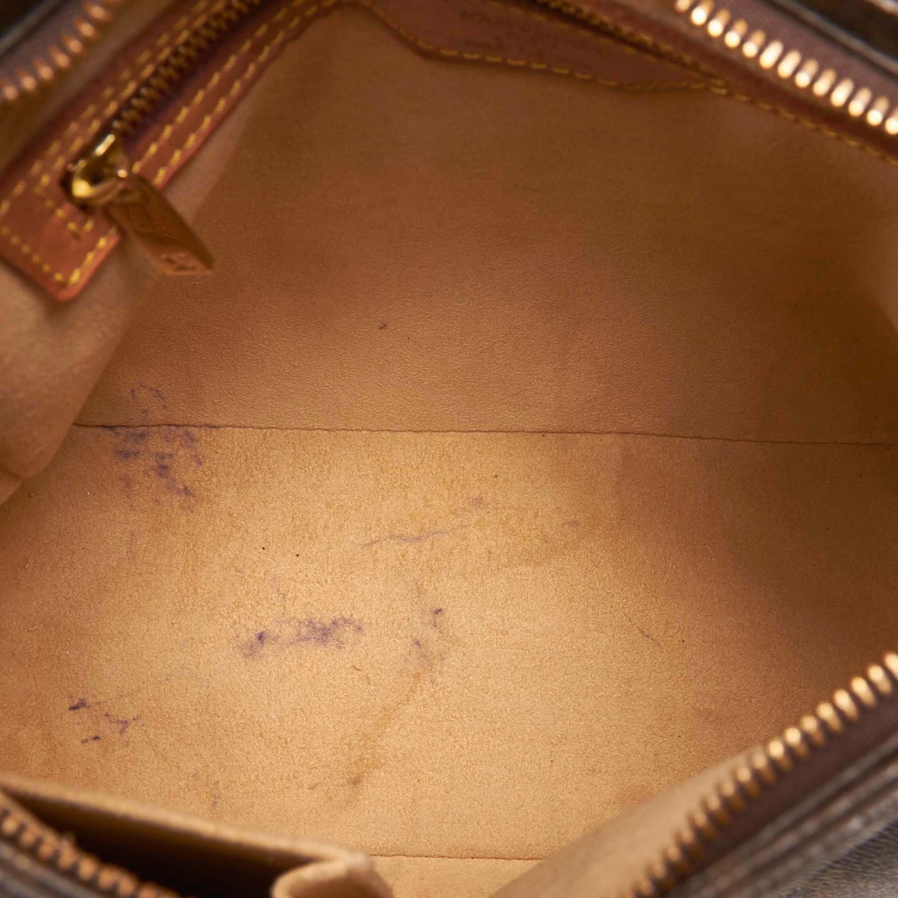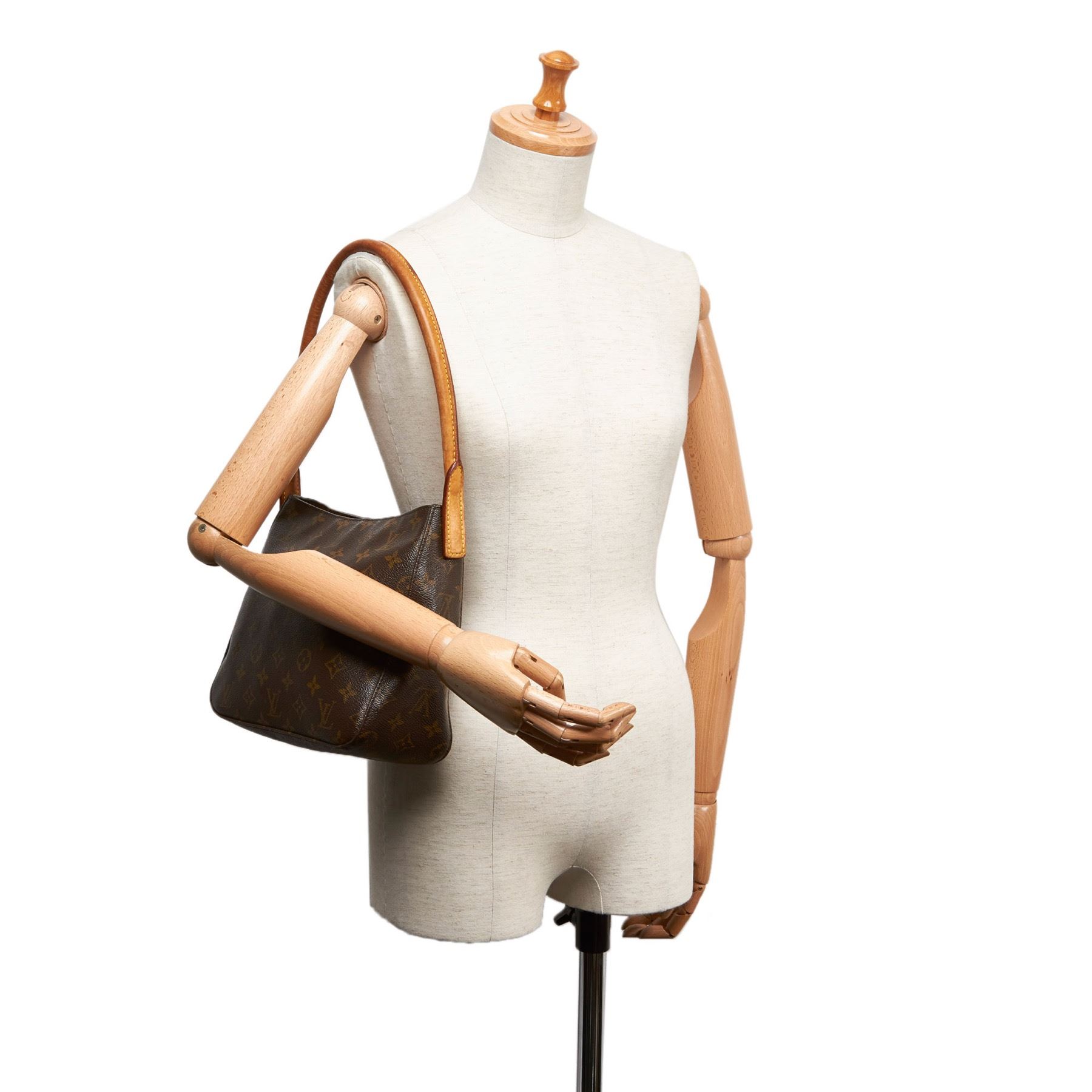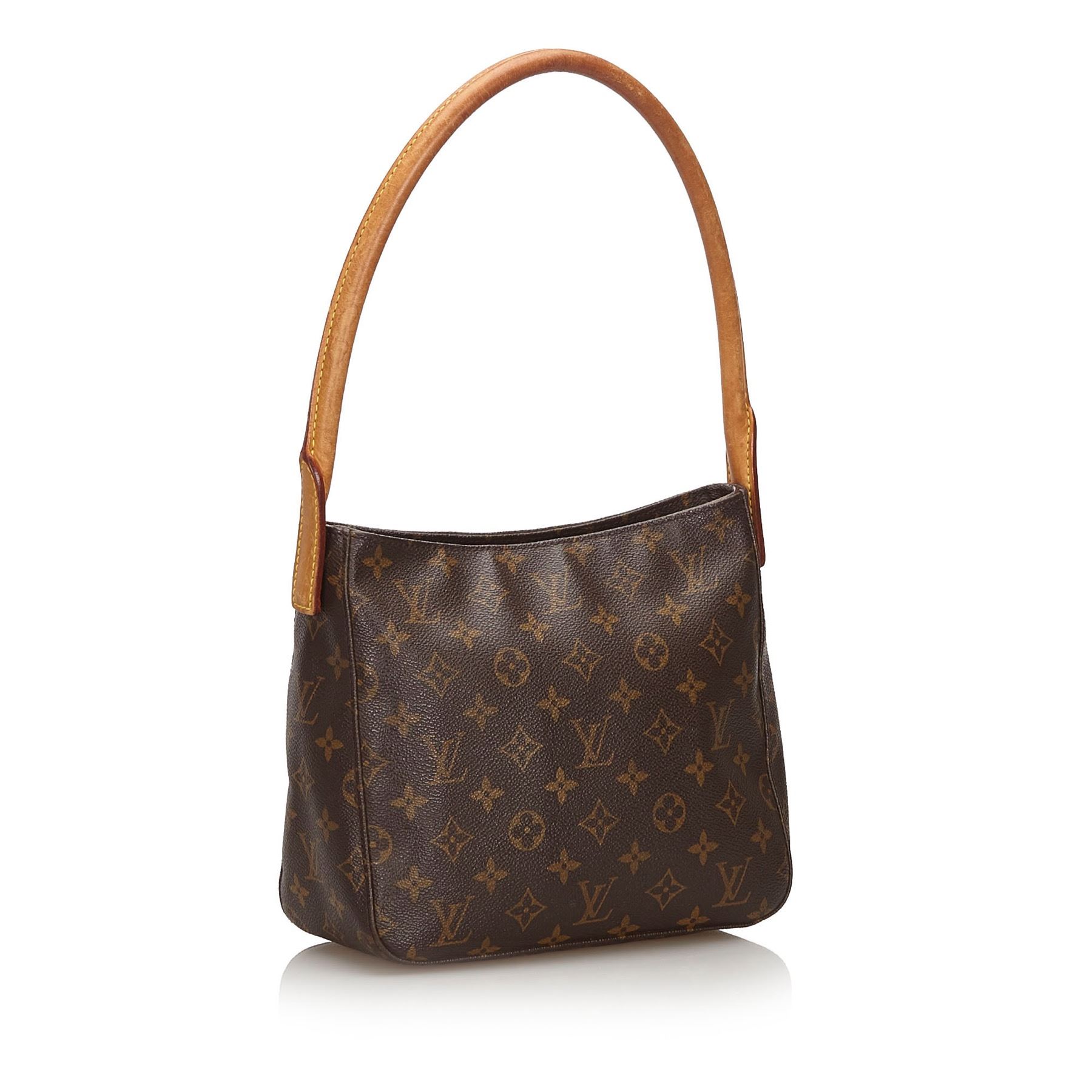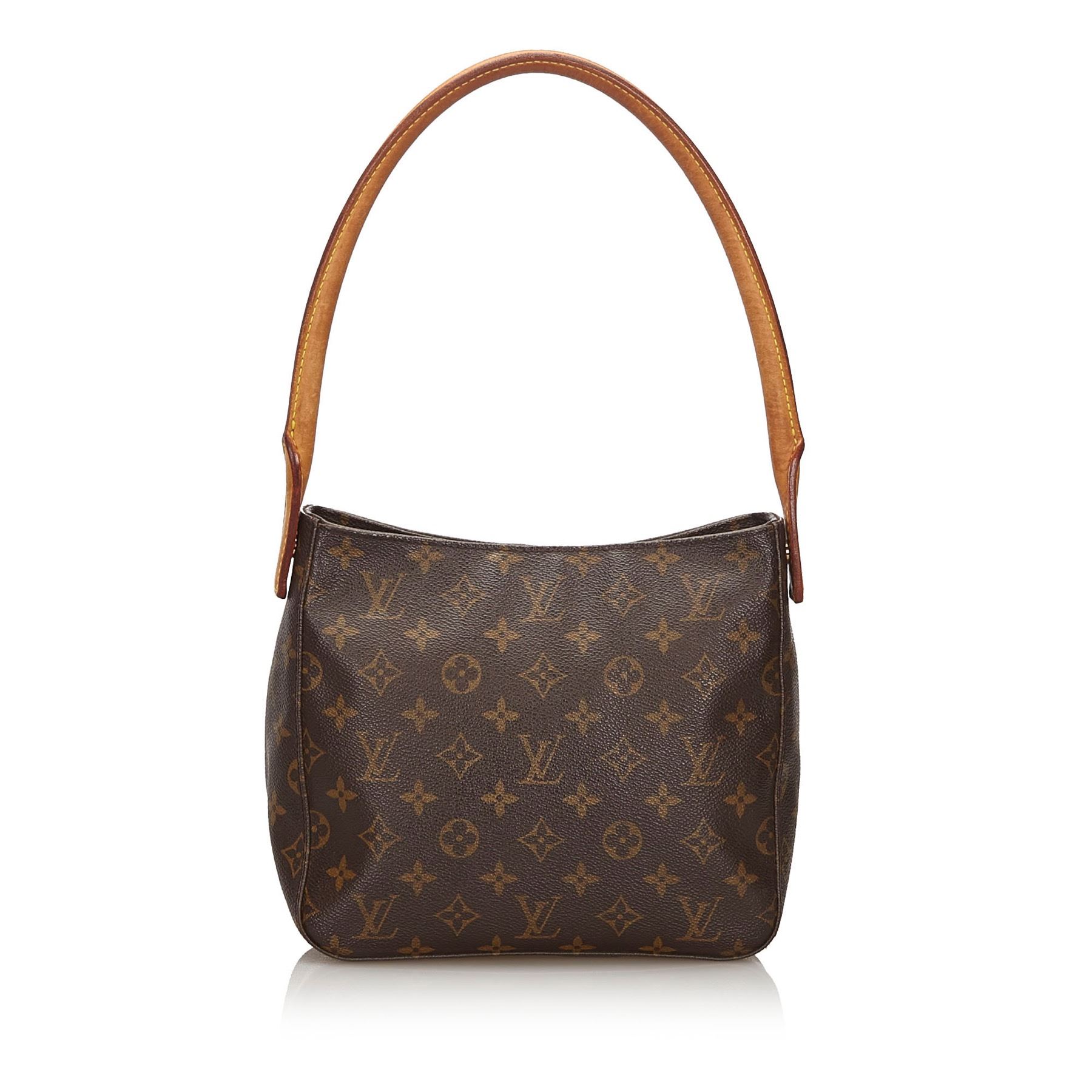 The Looping MM features a monogram canvas body, a rolled shoulder strap, a top zip closure, and interior zip and slip pockets. Canvas x Monogram Canvas x Leather x Vachetta Leather Brown Exterior handle is stained and scratched. Exterior side is scratched. Interior lining is stained with water mark. Zipper is scratched. Size: 31 x 55 x 24 Card: NO. Louis Vuitton pieces do not come with an authenticity card—please refer to the production date code within the bag for its age and as an authenticity reference. Made in: France