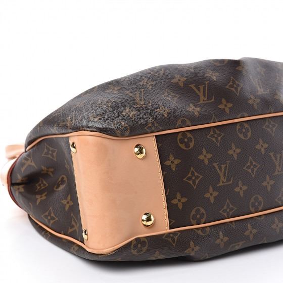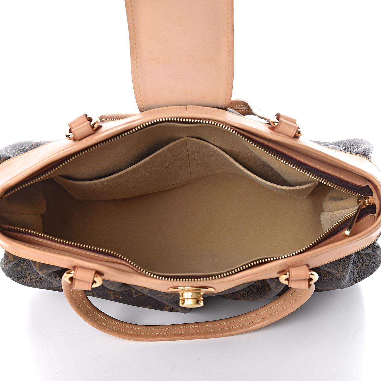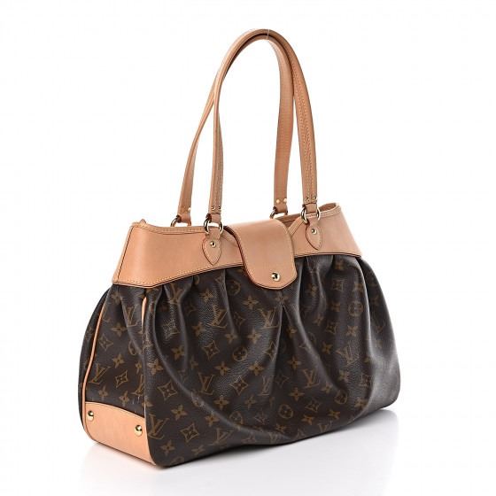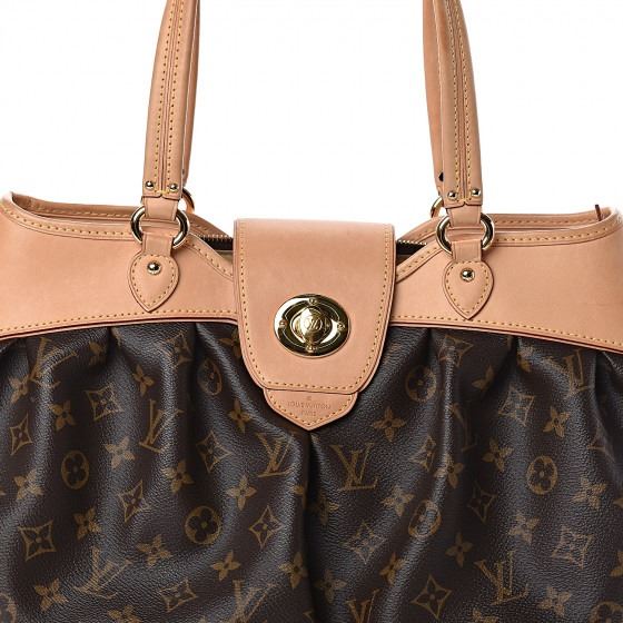 Crafted of classic Louis Vuitton monogram toile canvas. The handbag features vachetta cowhide leather strap handles, top crest and a crossover strap with a turn lock. This opens to a top zipper to a sand-colored microfiber interior with patch pockets.