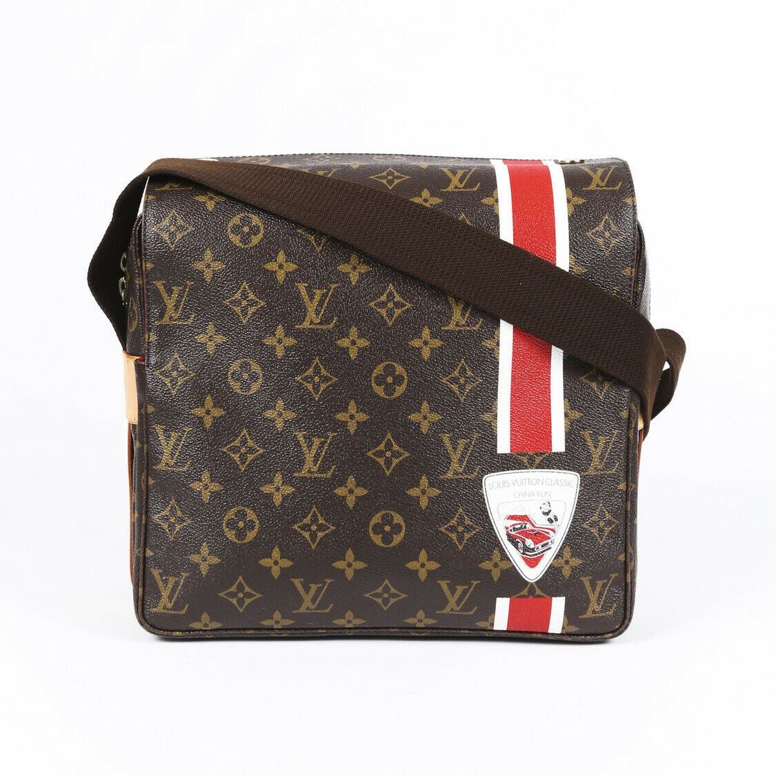 Circa 2008. Men's Louis Vuitton China Run Naviglio messenger bag is crafted from iconic monogram coated canvas and features brass hardware, an adjustable strap, zipper with snap closures, and a compartmentalized canvas interior with pockets.