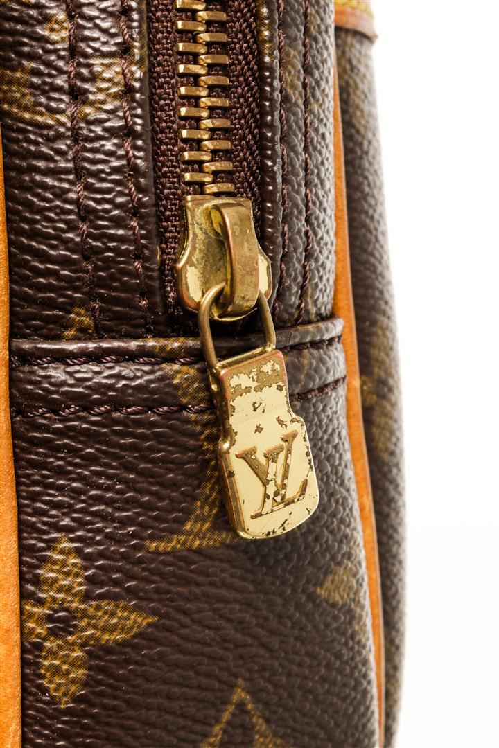 One Louis Vuitton Monogram Reporter PM Shoulder Bag. Item is sold AS-IS. All available information is listed in the description and shown in the photo. Louis Vuitton Monogram Reporter PM shoulder bag with coated canvas exterior, beige fabric lining, adjustable fabric strap, contrasting vachetta leather trims, gold-tone hardware, zipper closure, and one main compartment.