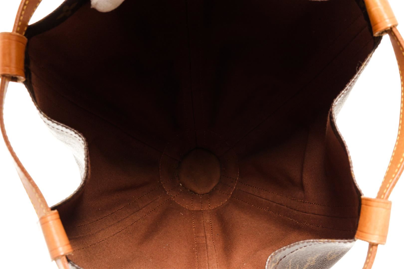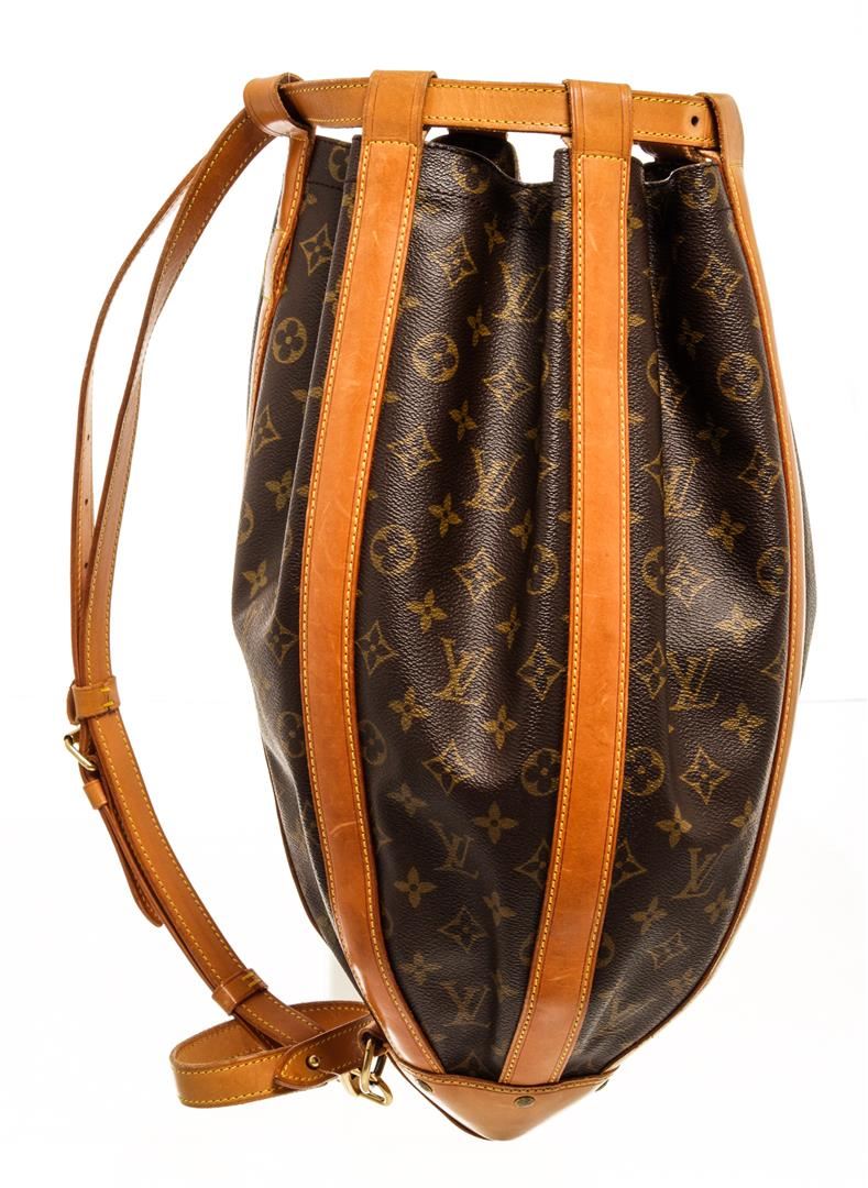 One Louis Vuitton Monogram Romeo Gigli Shoulder Bag. Item is sold AS-IS. All available information is listed in the description and shown in the photo. Louis Vuitton Monogram Romeo Gigli shoulder bag with brown coated canvas exterior, brown fabric lining, contrasting vachetta leather adjustable straps and trims, gold-tone hardware, drawstring closure, and one main compartment.